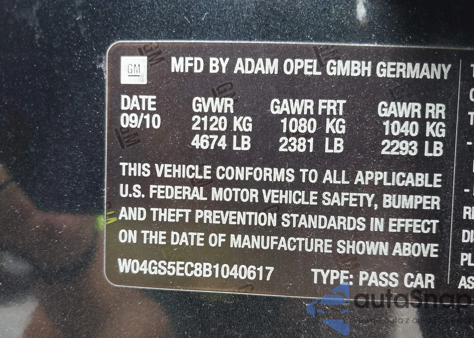 • VIN W04GS5EC8B1040617