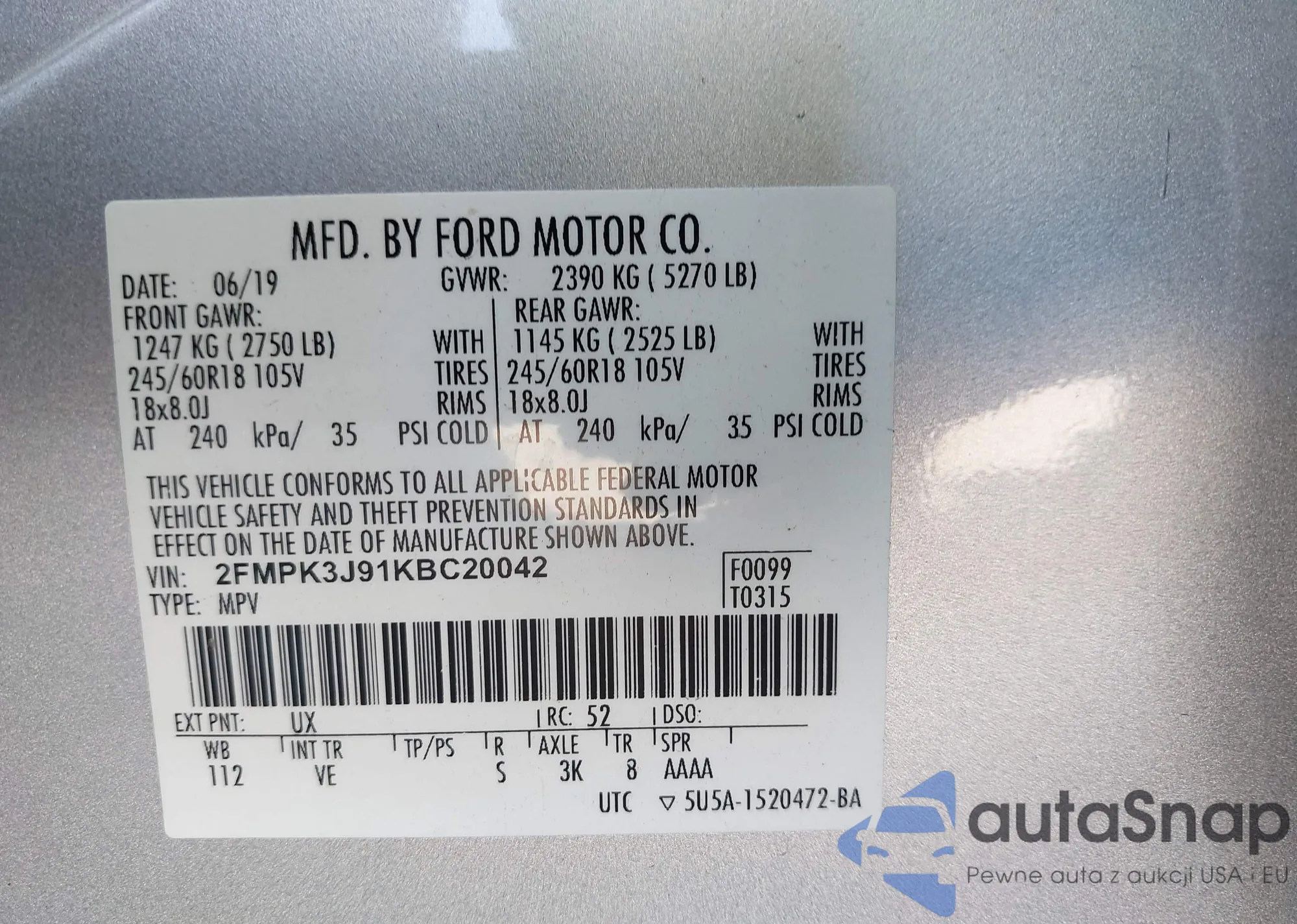 • VIN 2FMPK3J91KBC20042