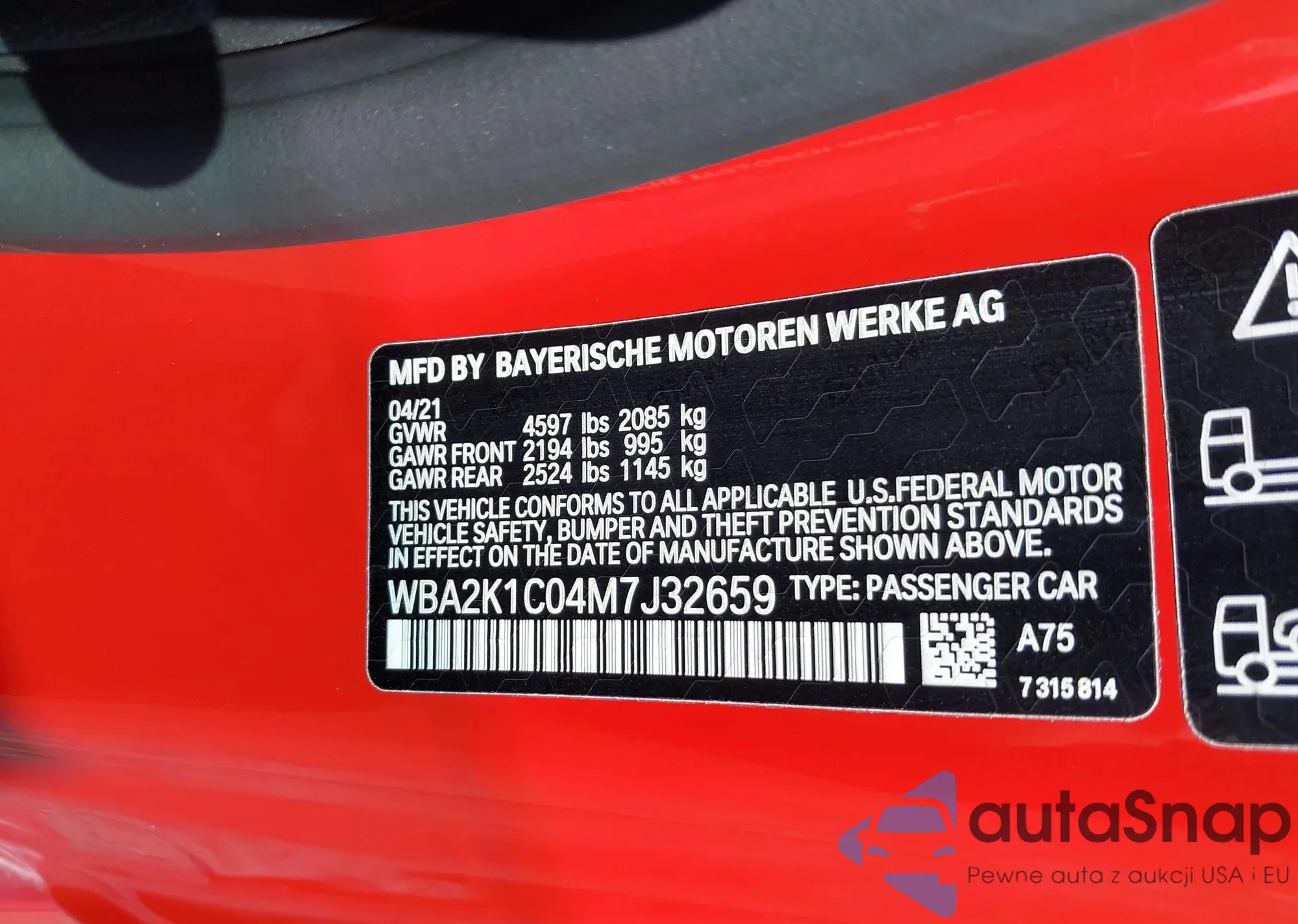 • VIN WBA2K1C04M7J32659
