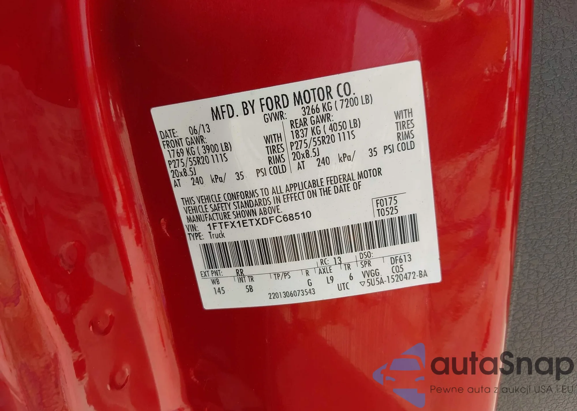 • VIN 1FTFX1ETXDFC68510