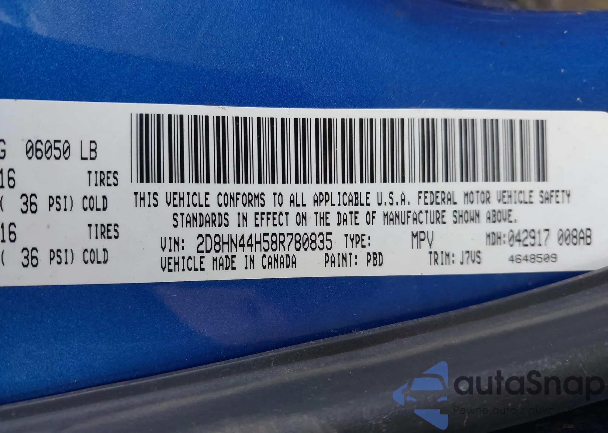 • VIN 2D8HN44H58R780835