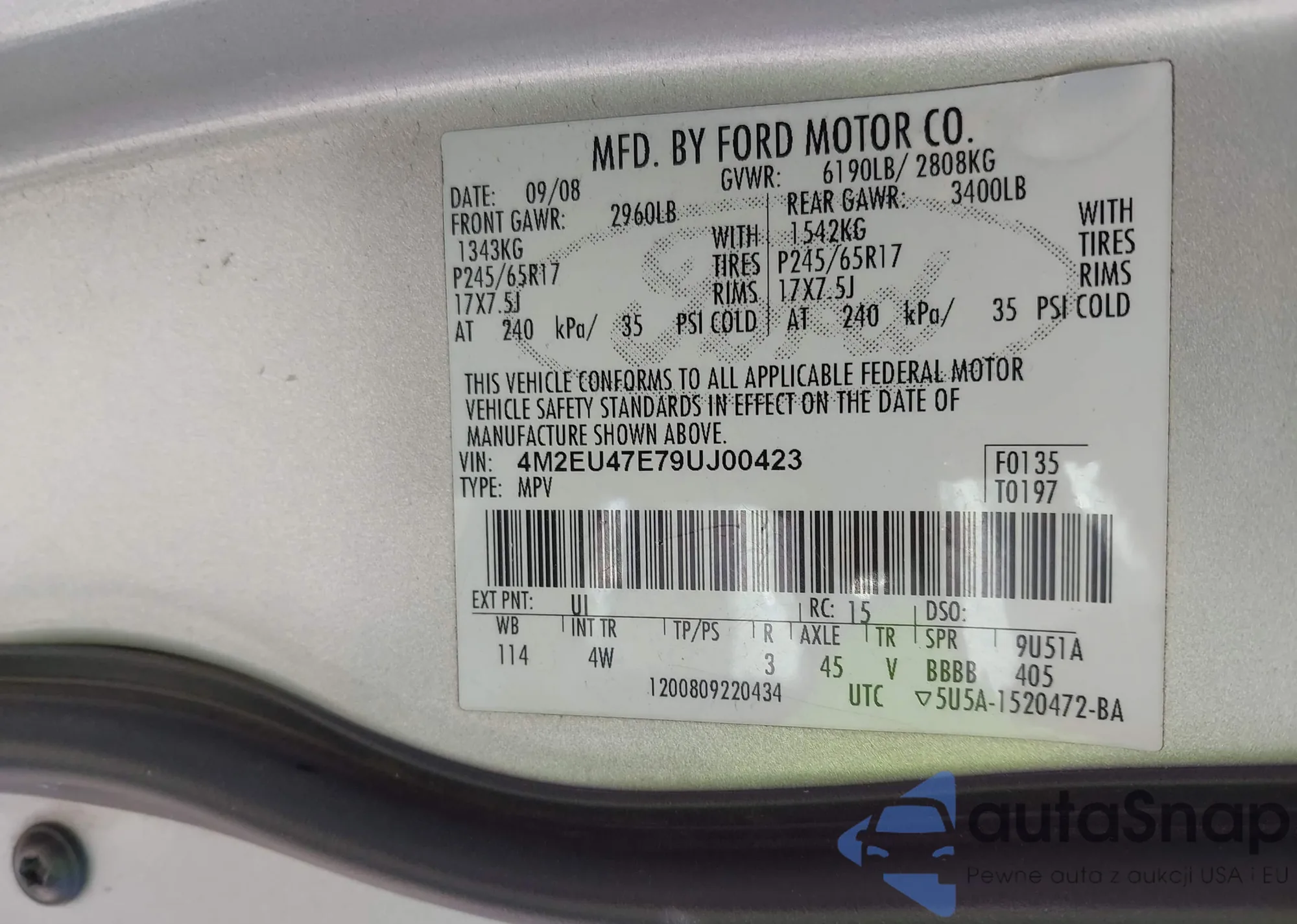 • VIN 4M2EU47E79UJ00423