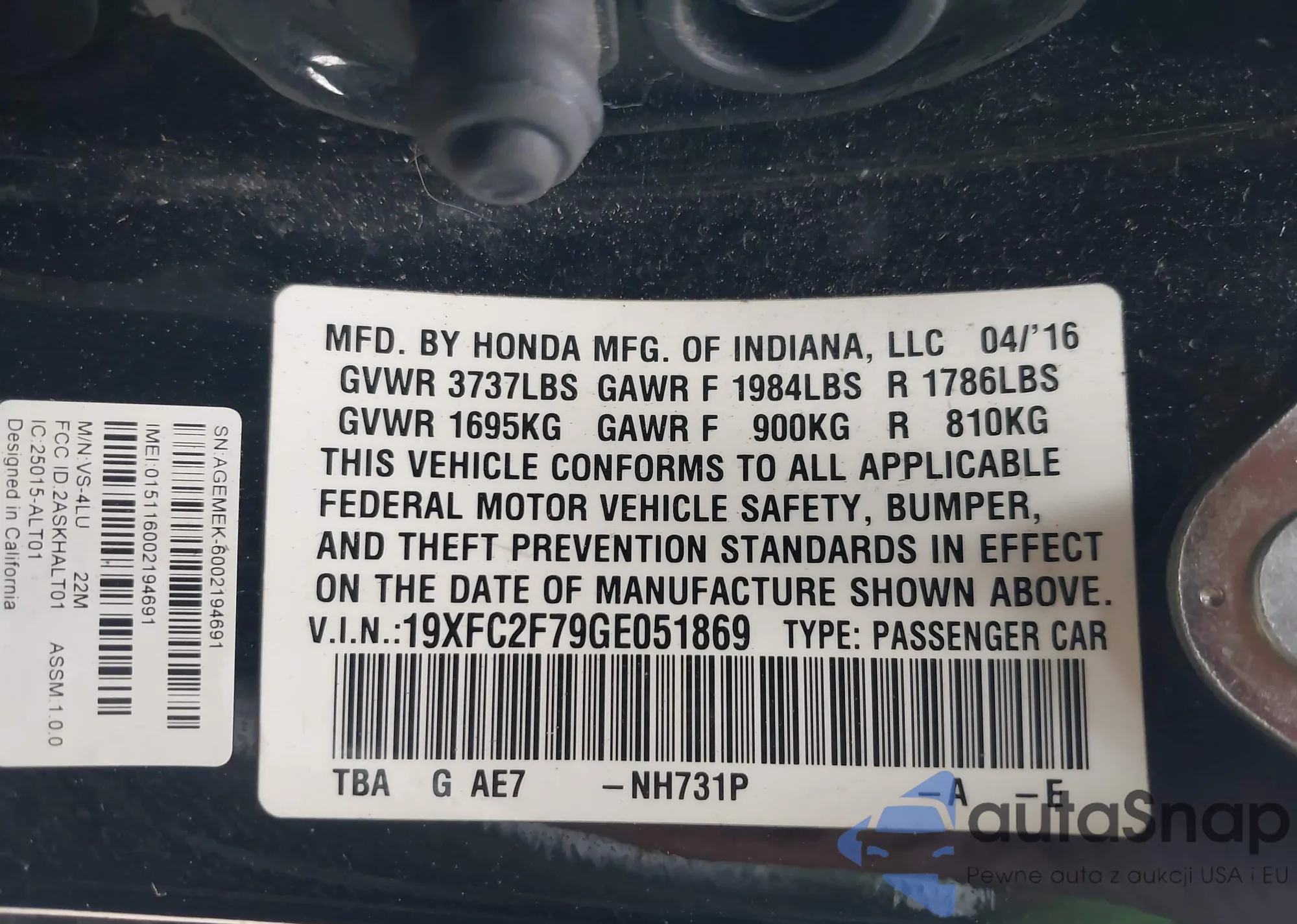• VIN 19XFC2F79GE051869