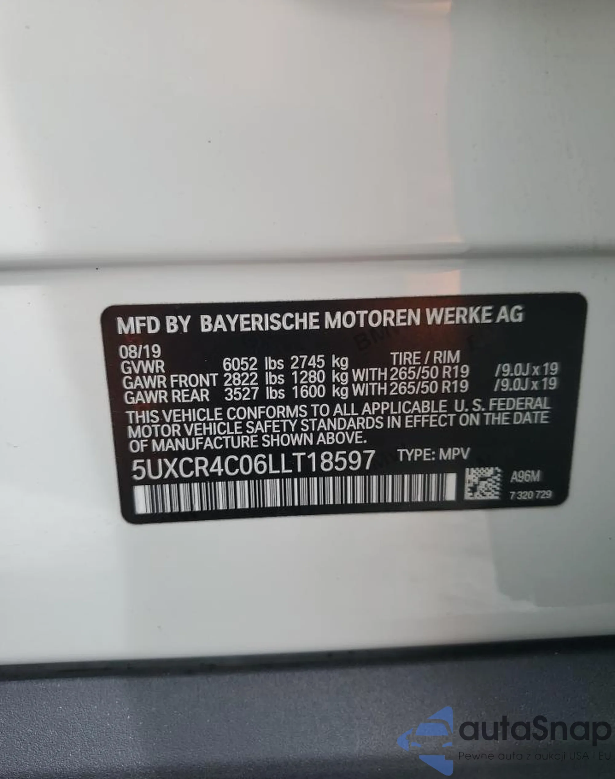 LOT: 80352815 VIN: 5UXCR4C06LLT18597