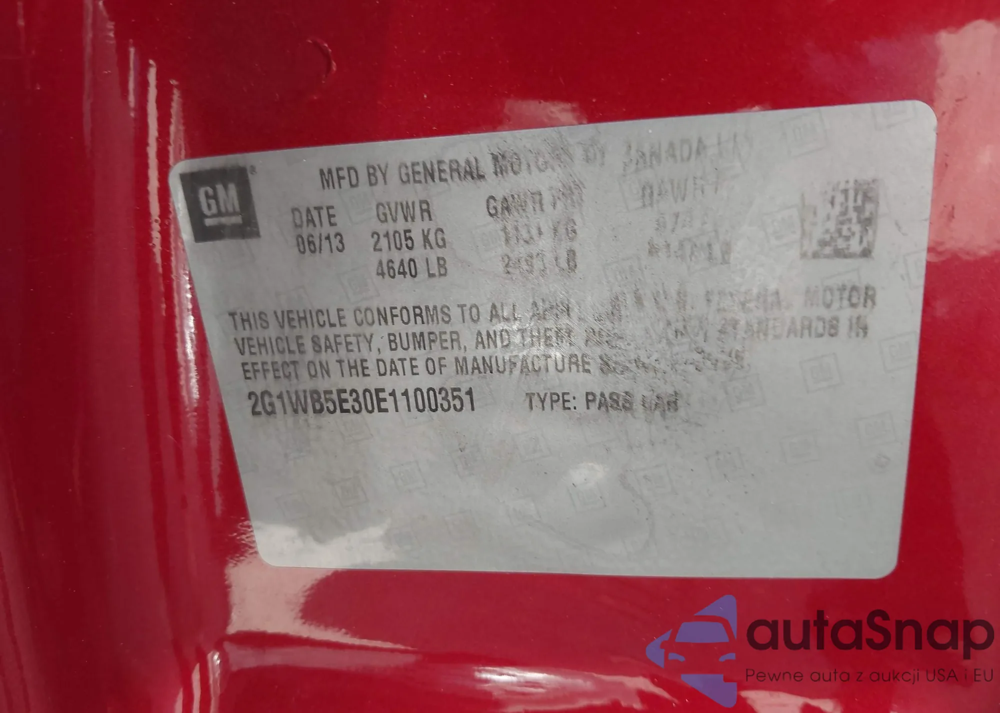 LOT: 43068468 VIN: 2G1WB5E1100351
