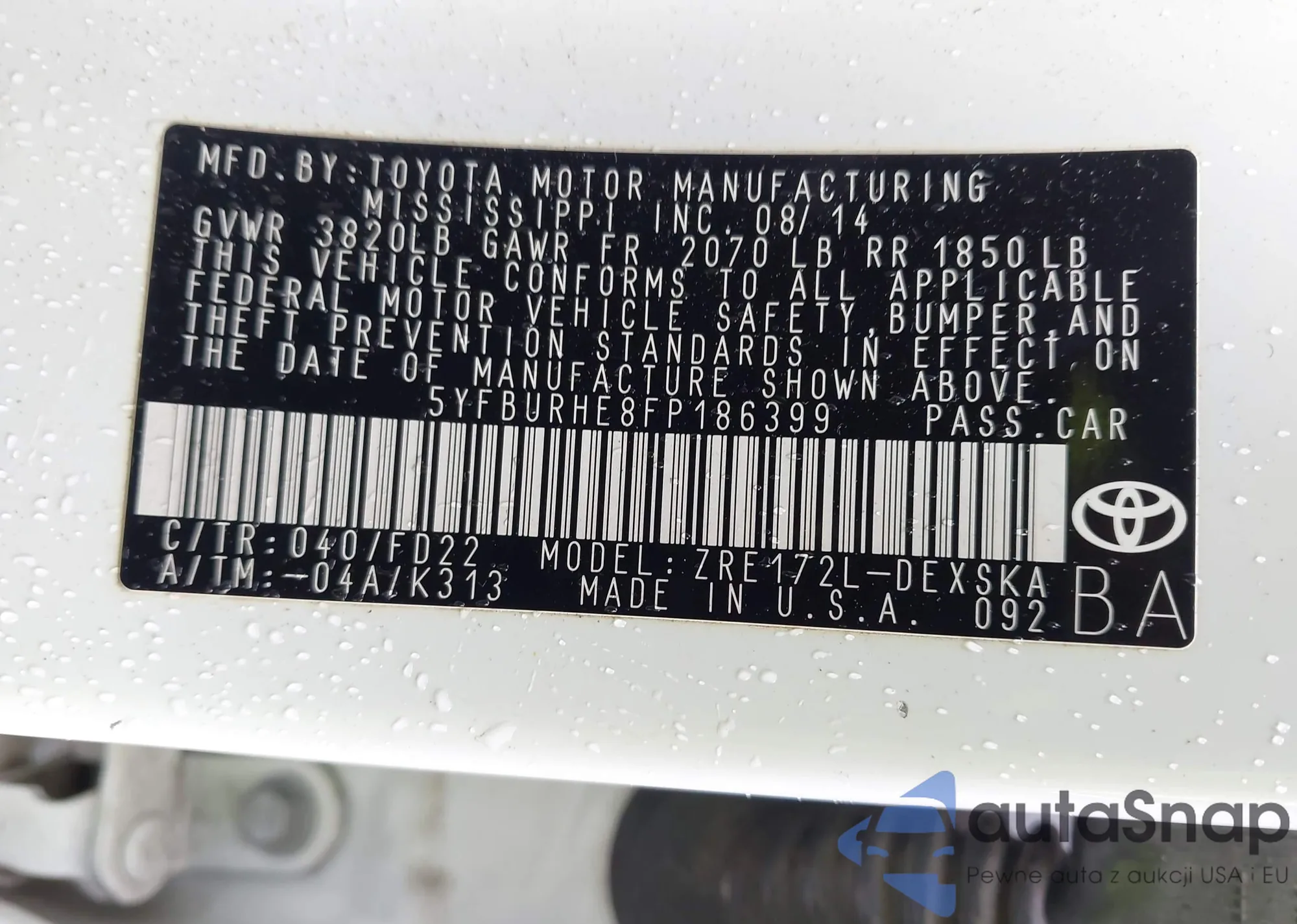 LOT: 42907037 VIN: 4T1C11AK2PU085308
