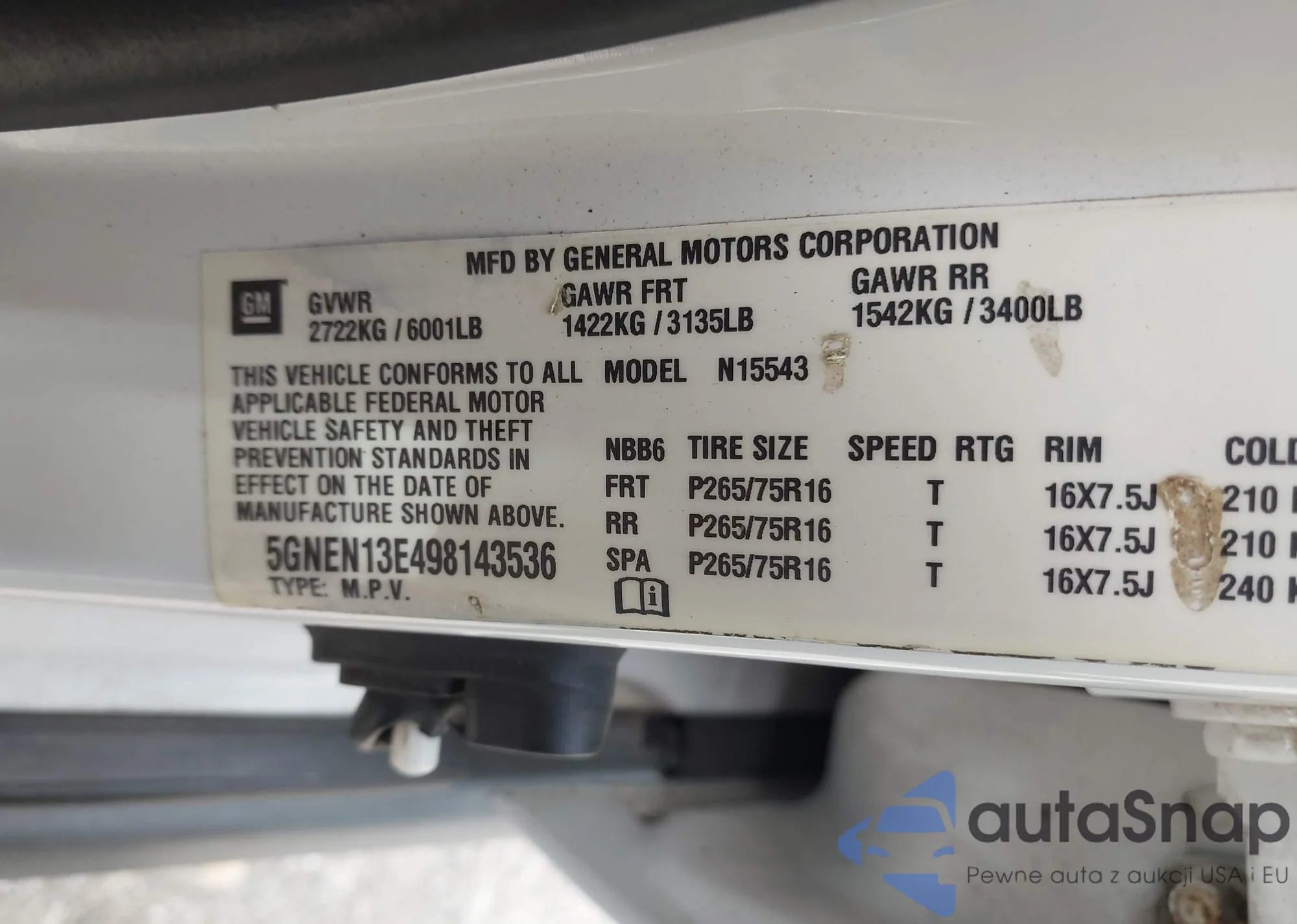 • VIN 5GNEN13E498143536