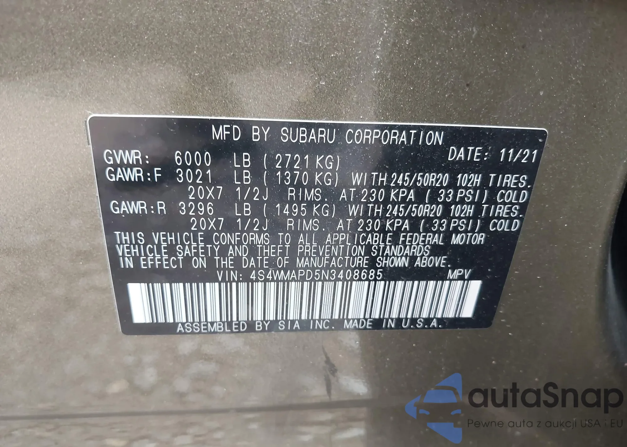 • VIN 4S4WMAPD5N3408685