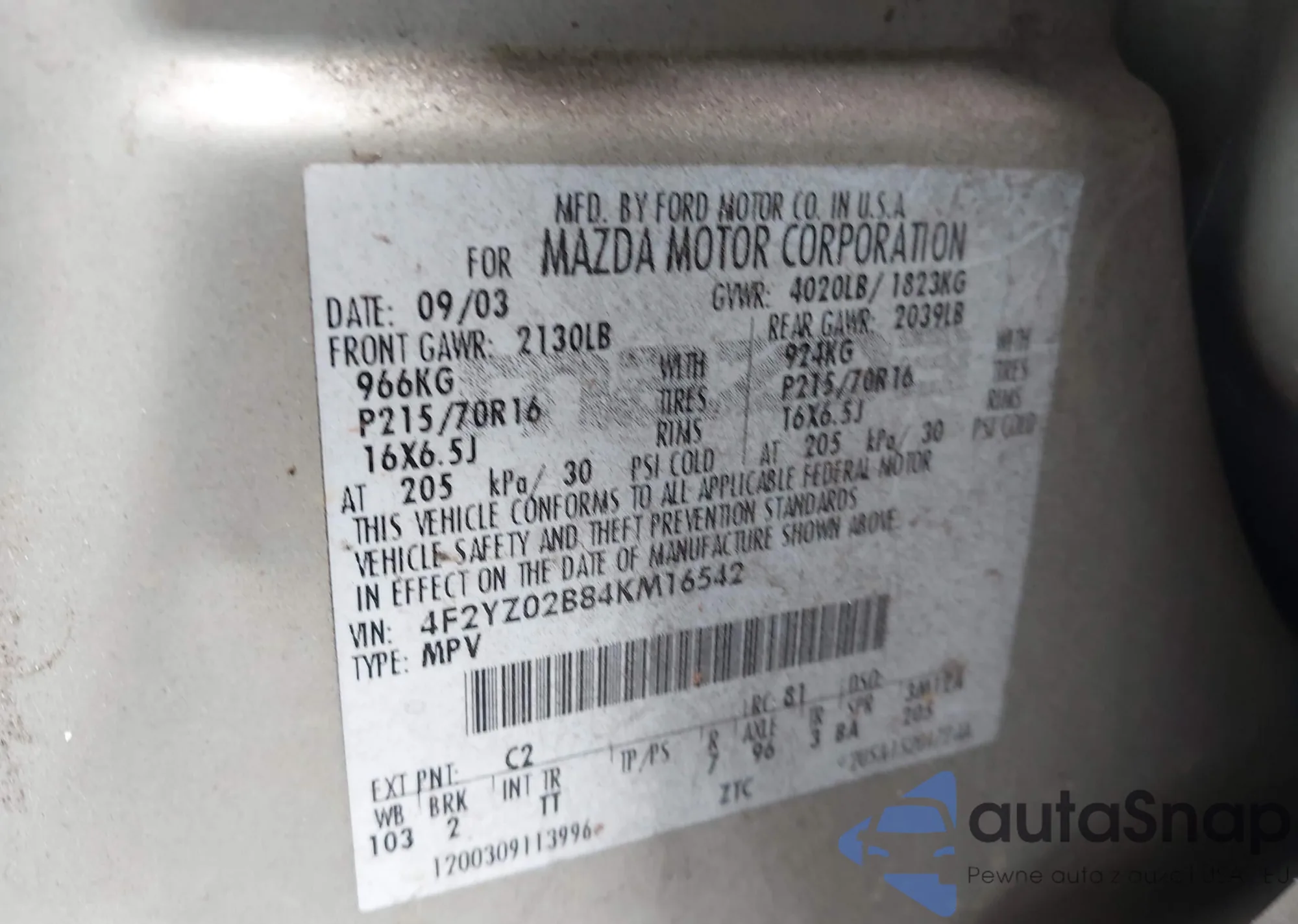 • VIN 4F2YZ02B84KM16542
