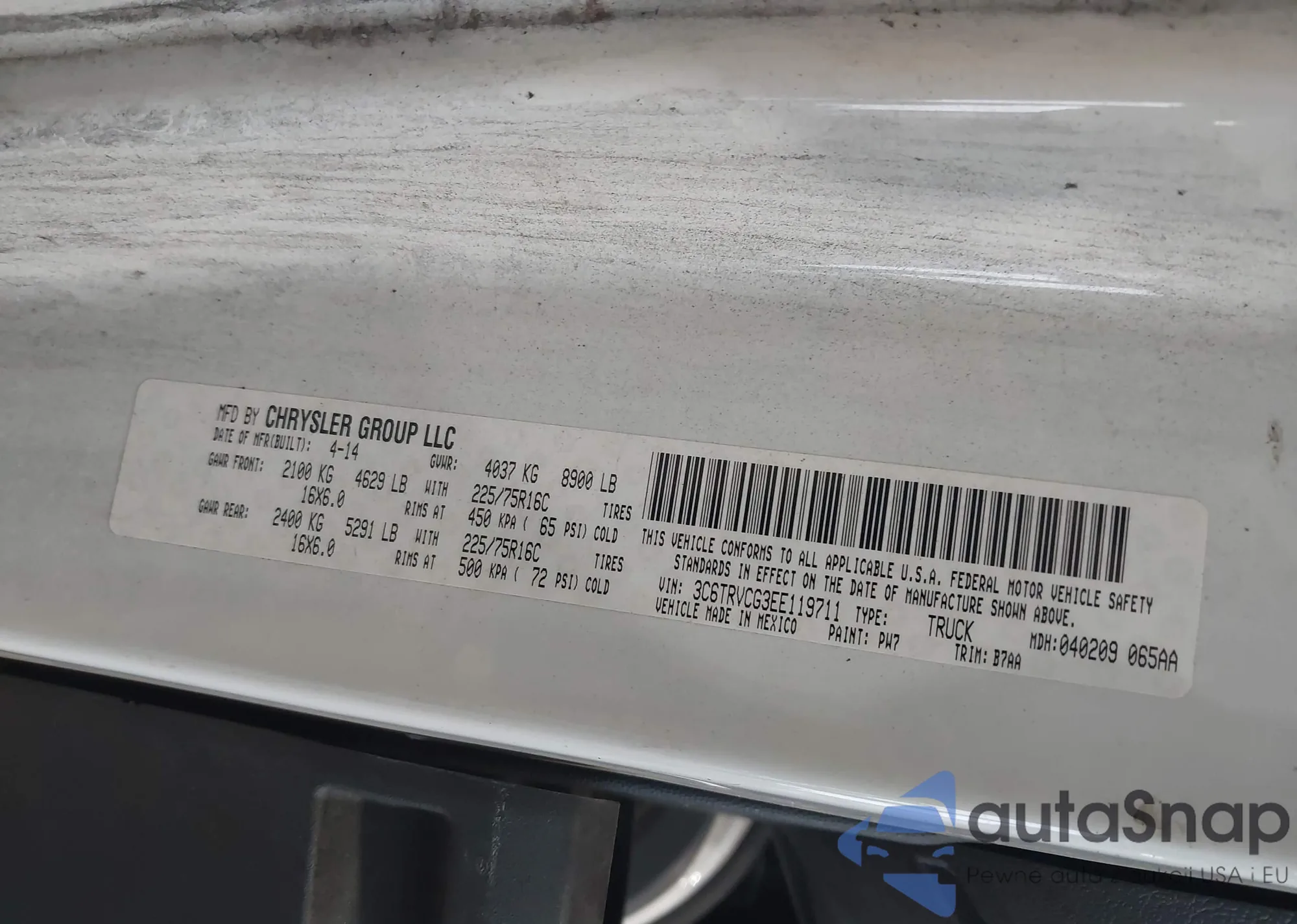 • VIN 3C6TRVCG3EE119711