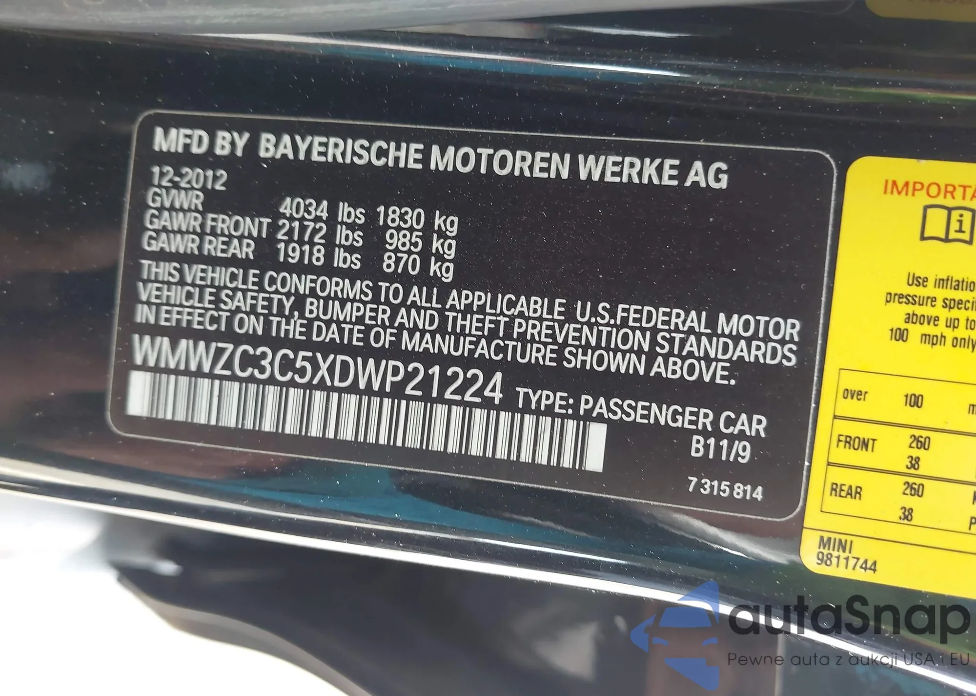 • VIN WMWZC3C5XDWP21224