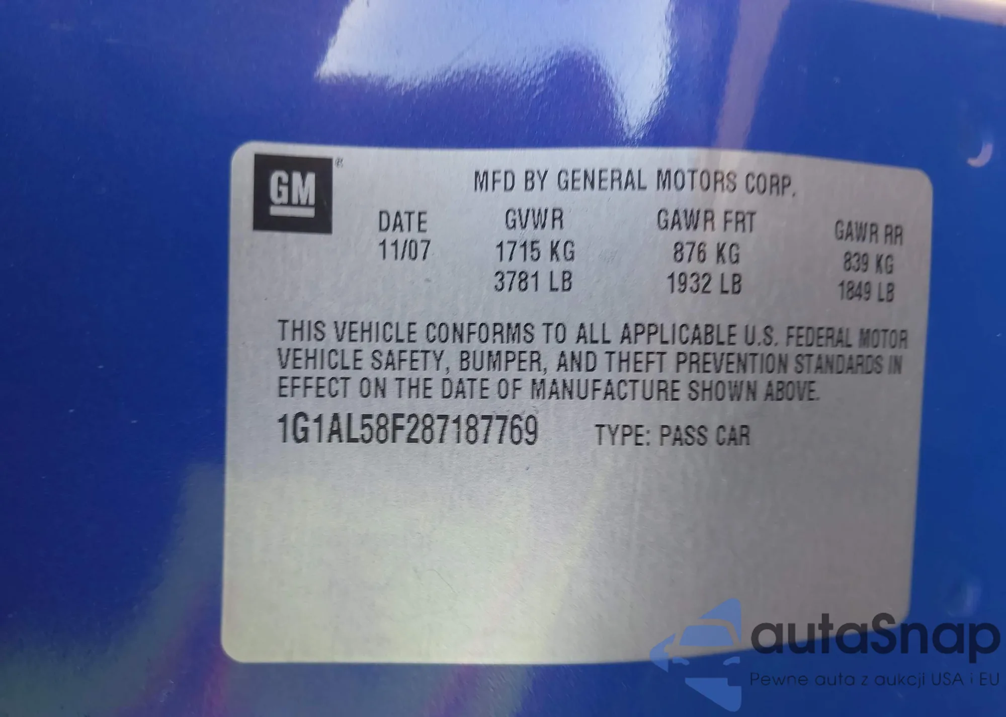• VIN 1G1AL58F287187769