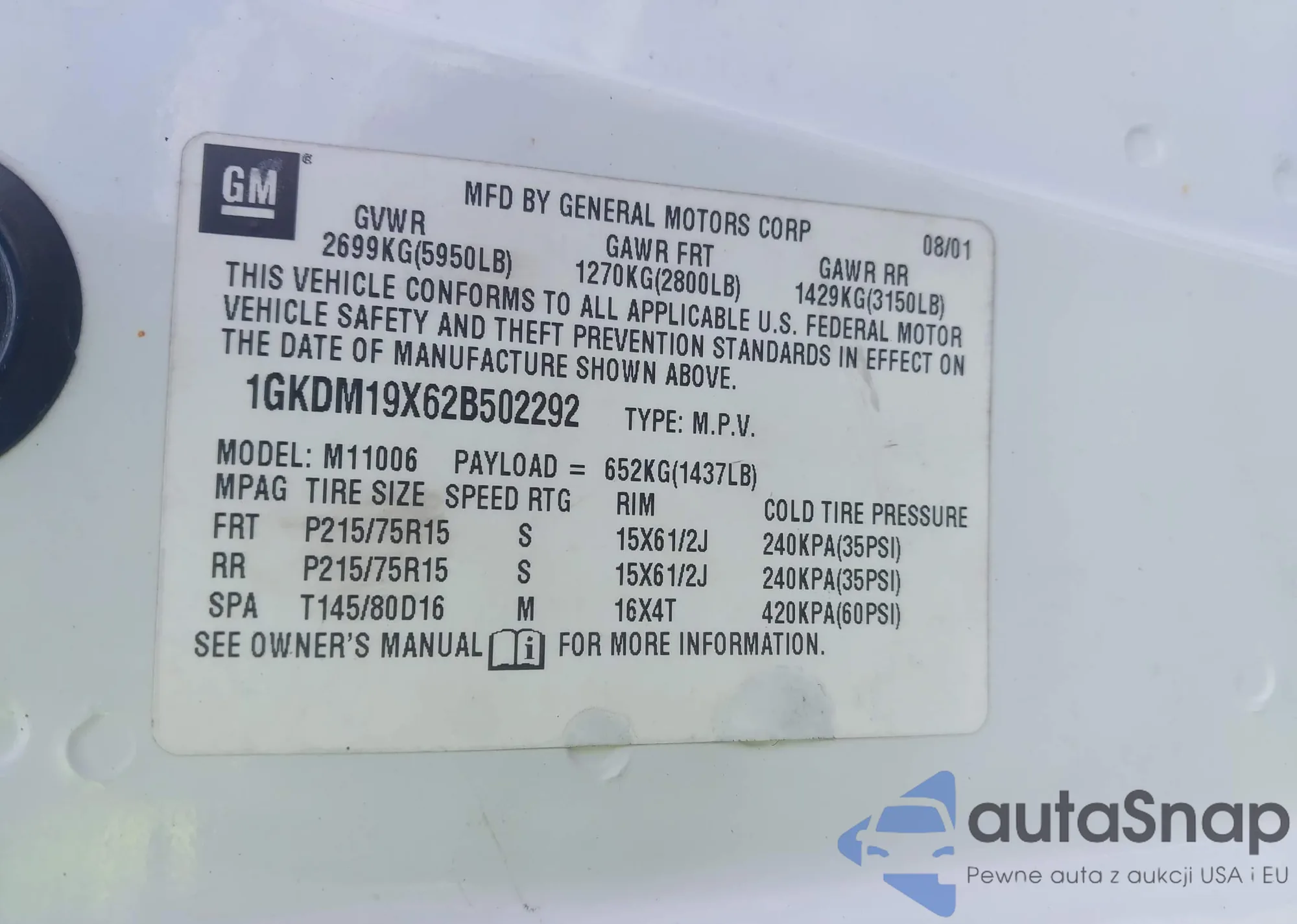 LOT: 43061838 VIN: 3GNDA33P27S601235
