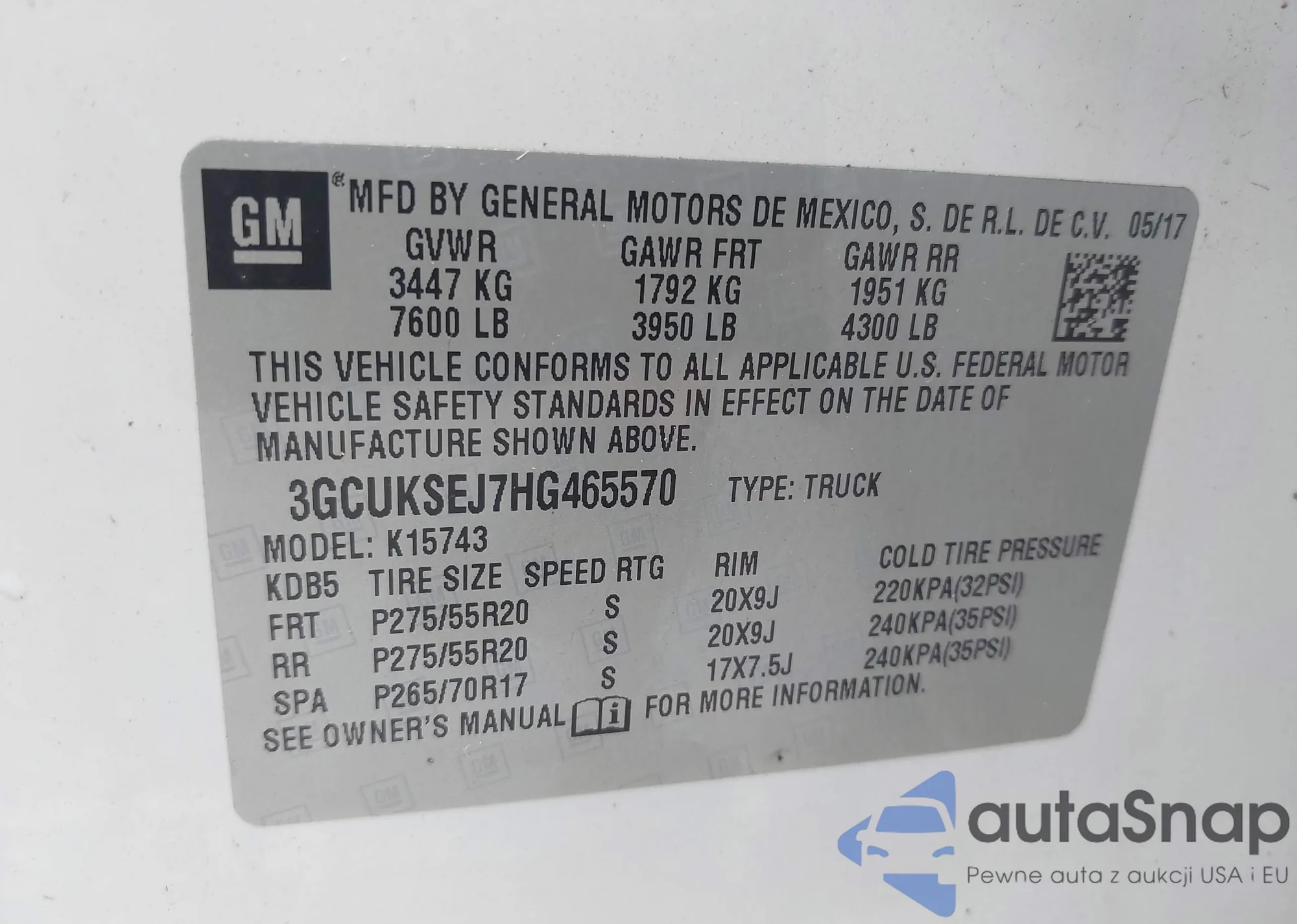 • VIN 3GCUKSEJ7HG465570