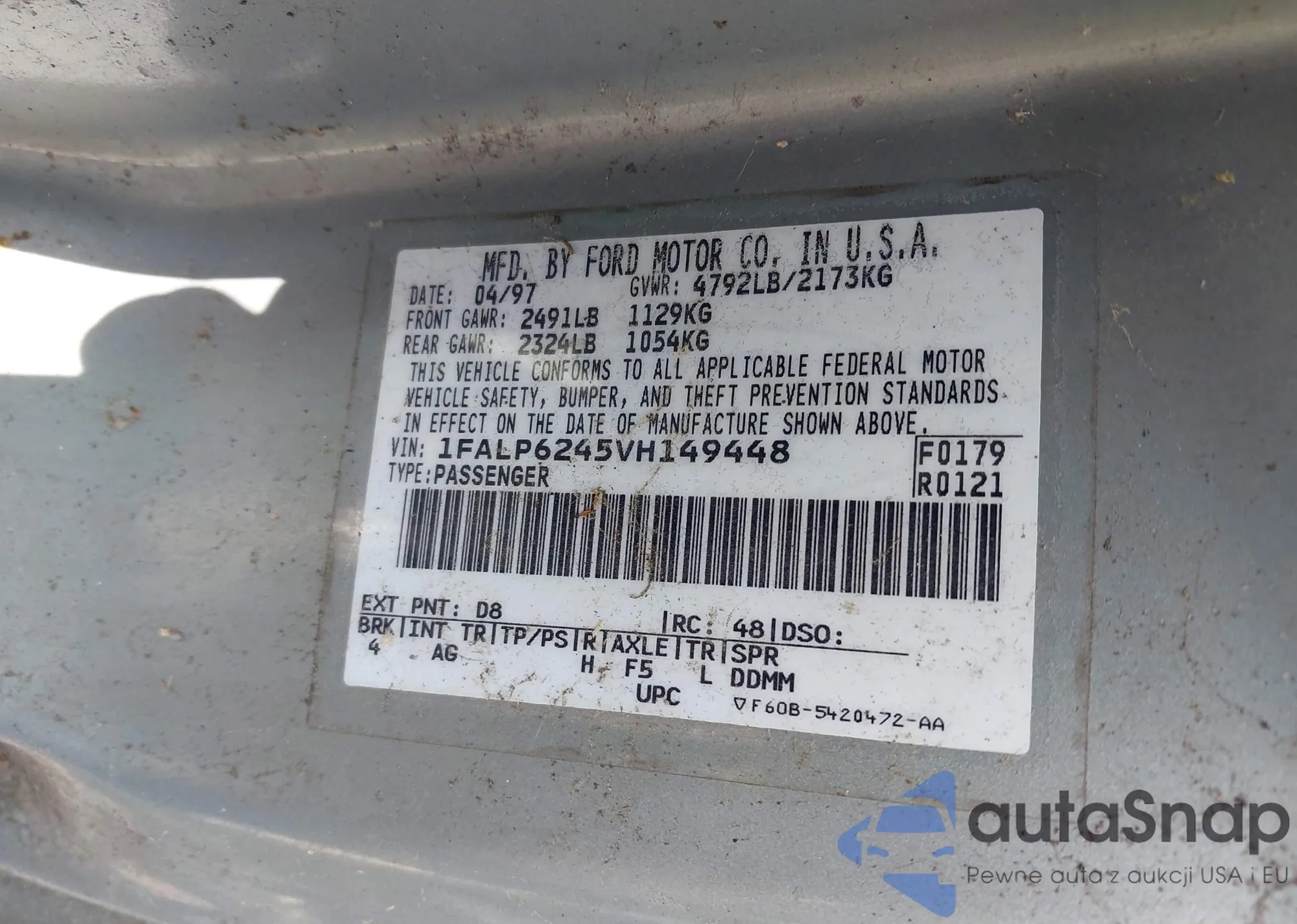 LOT: 43162404 VIN: 1FALP6245VH149448