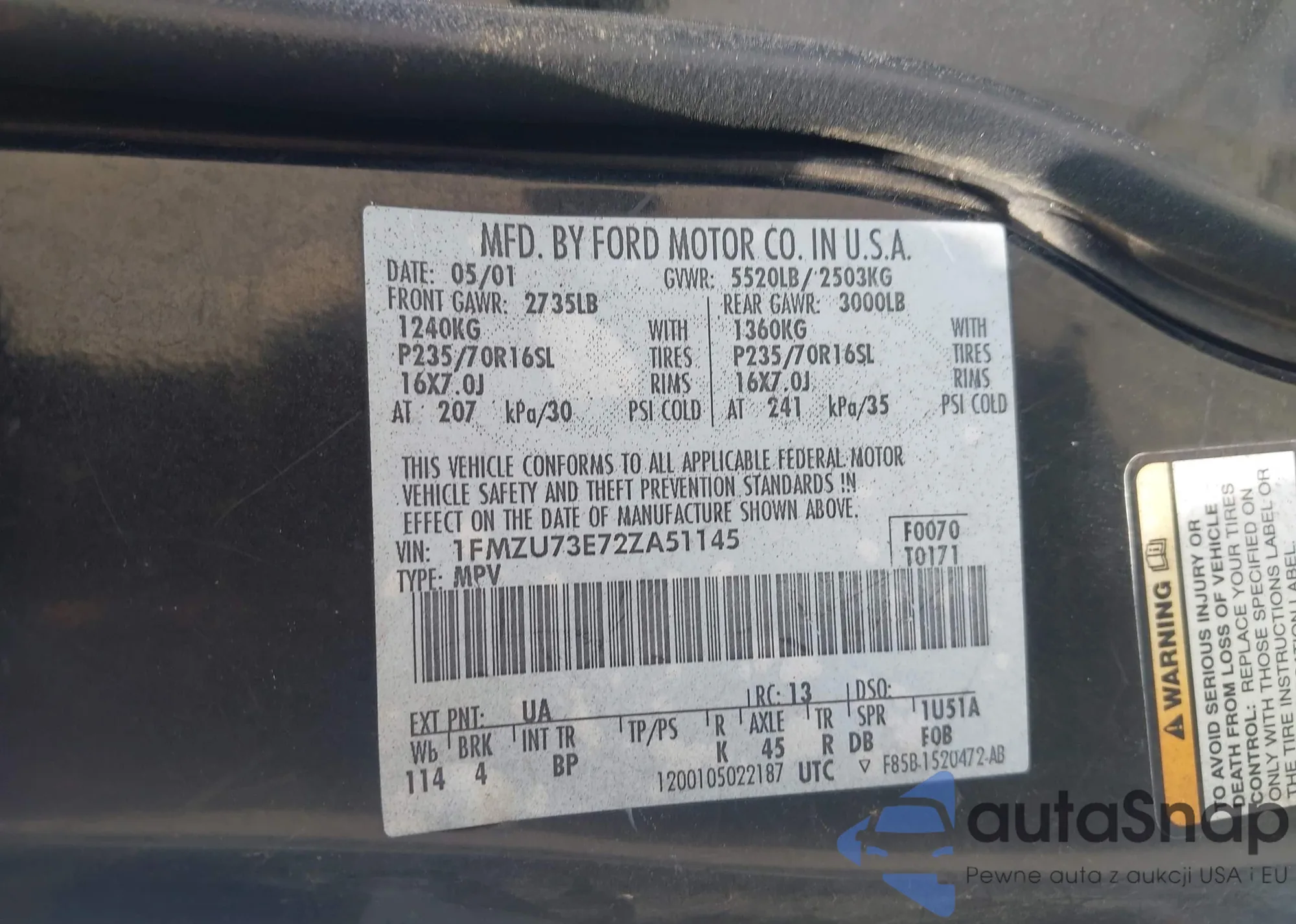 • VIN 1FMFU17598LA87473