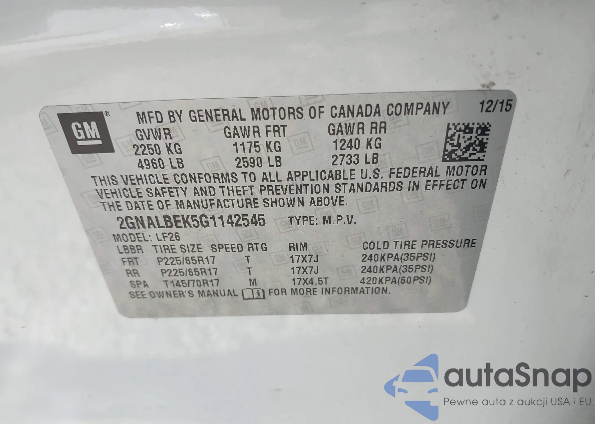 • VIN 2GNALBEK5G1142545