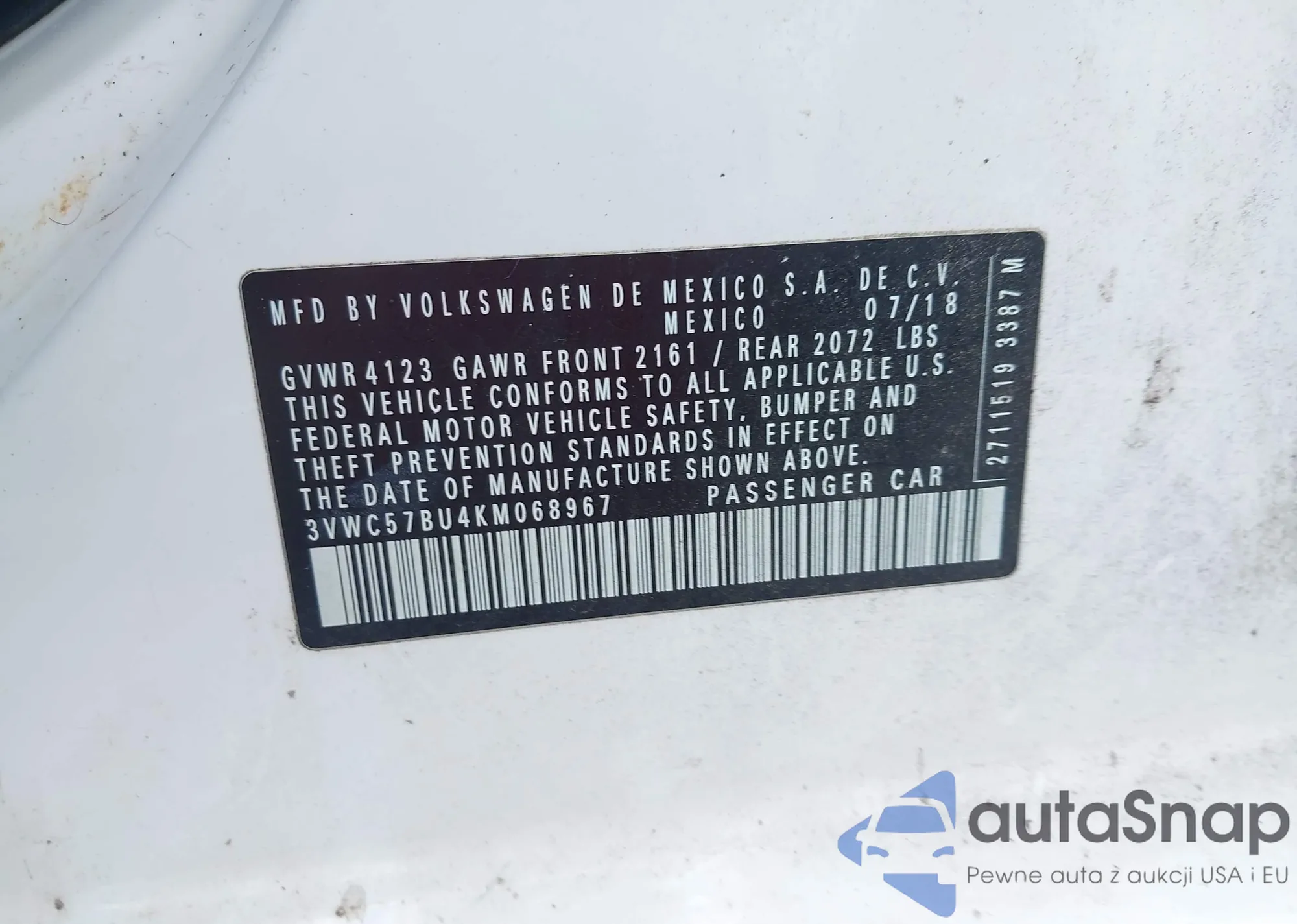 • VIN 3VWC57BU4KM068967
