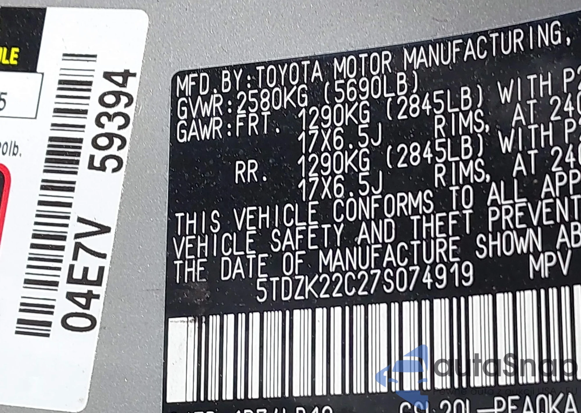 • VIN 5TDZK22C27S074919