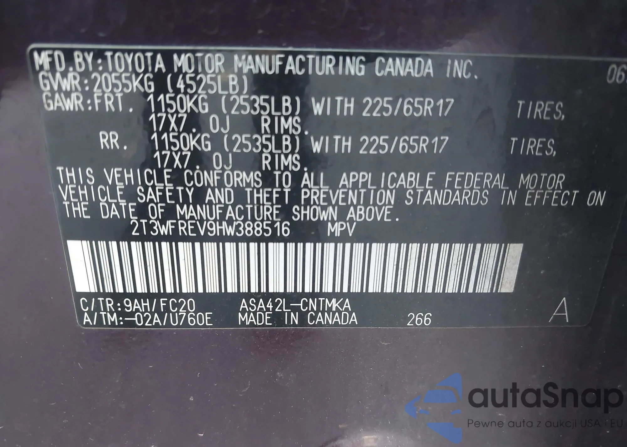 • VIN WAUP4AF53JA060181