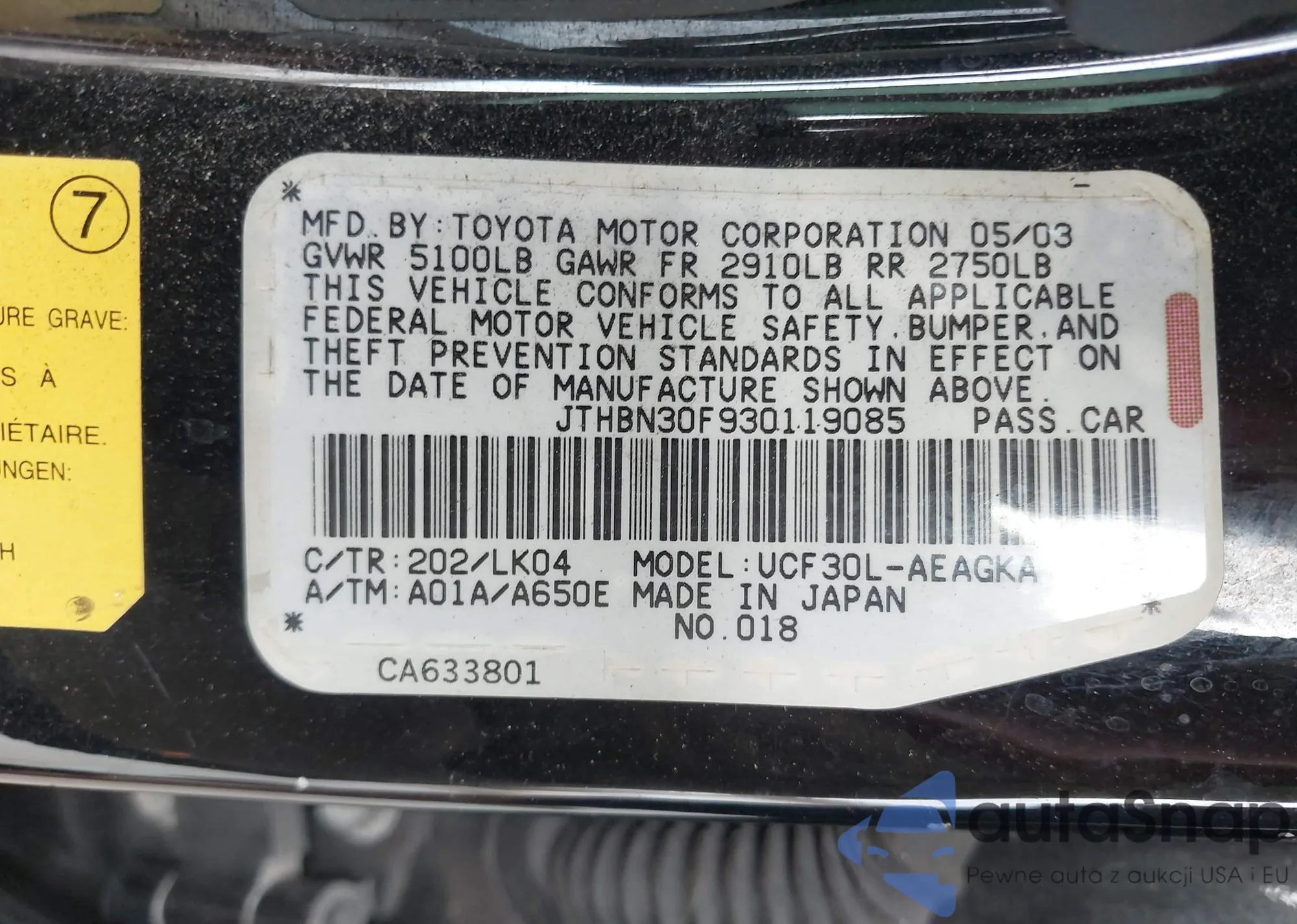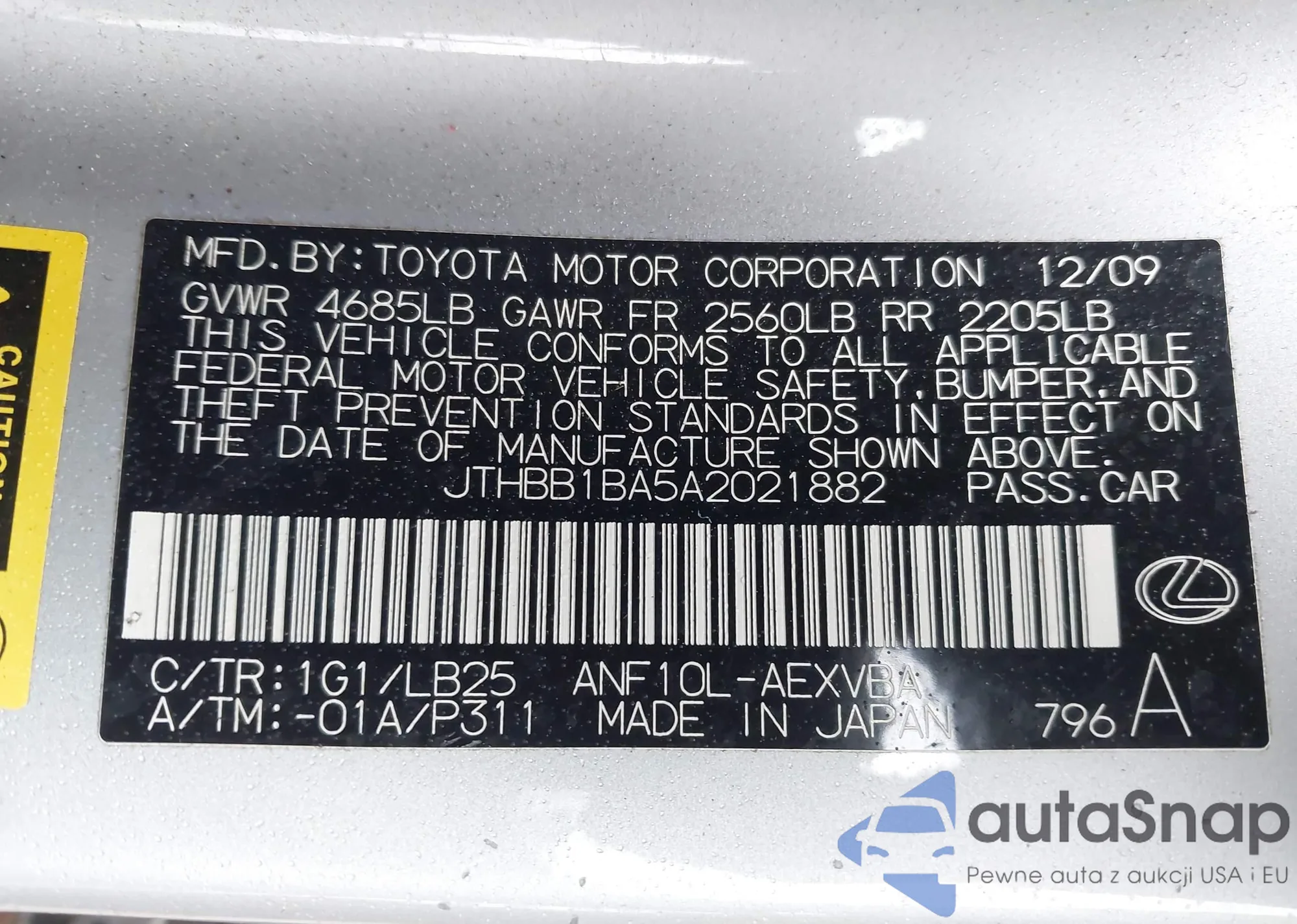 LOT: 43024845 VIN: JTHBB1BA5A2021882