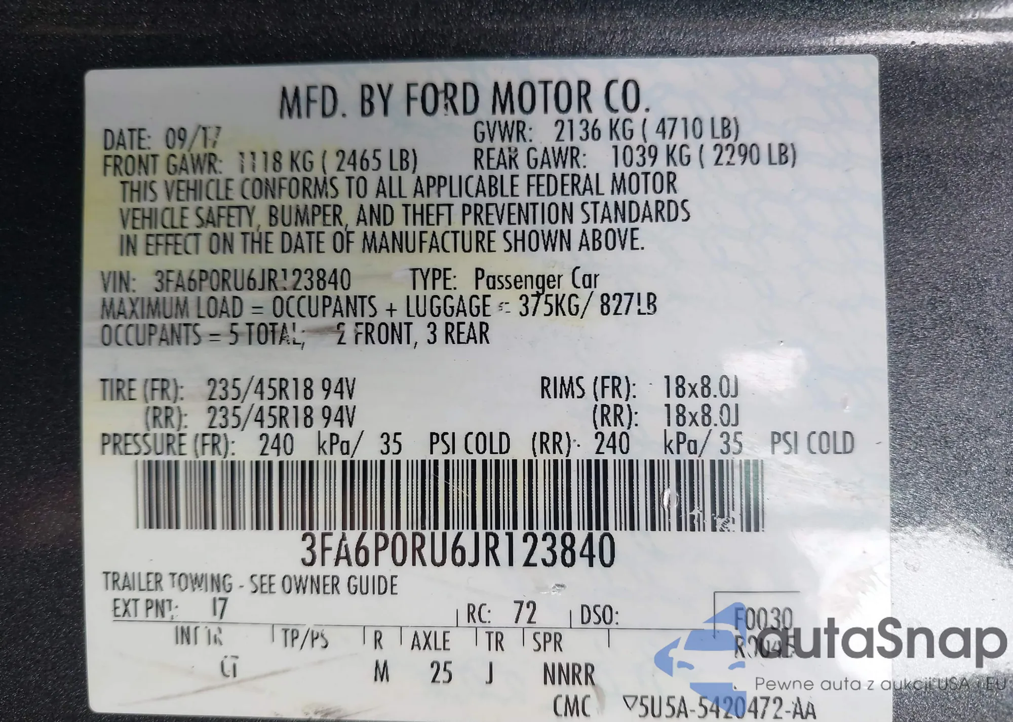 • VIN 1HGCP2F34CA107493