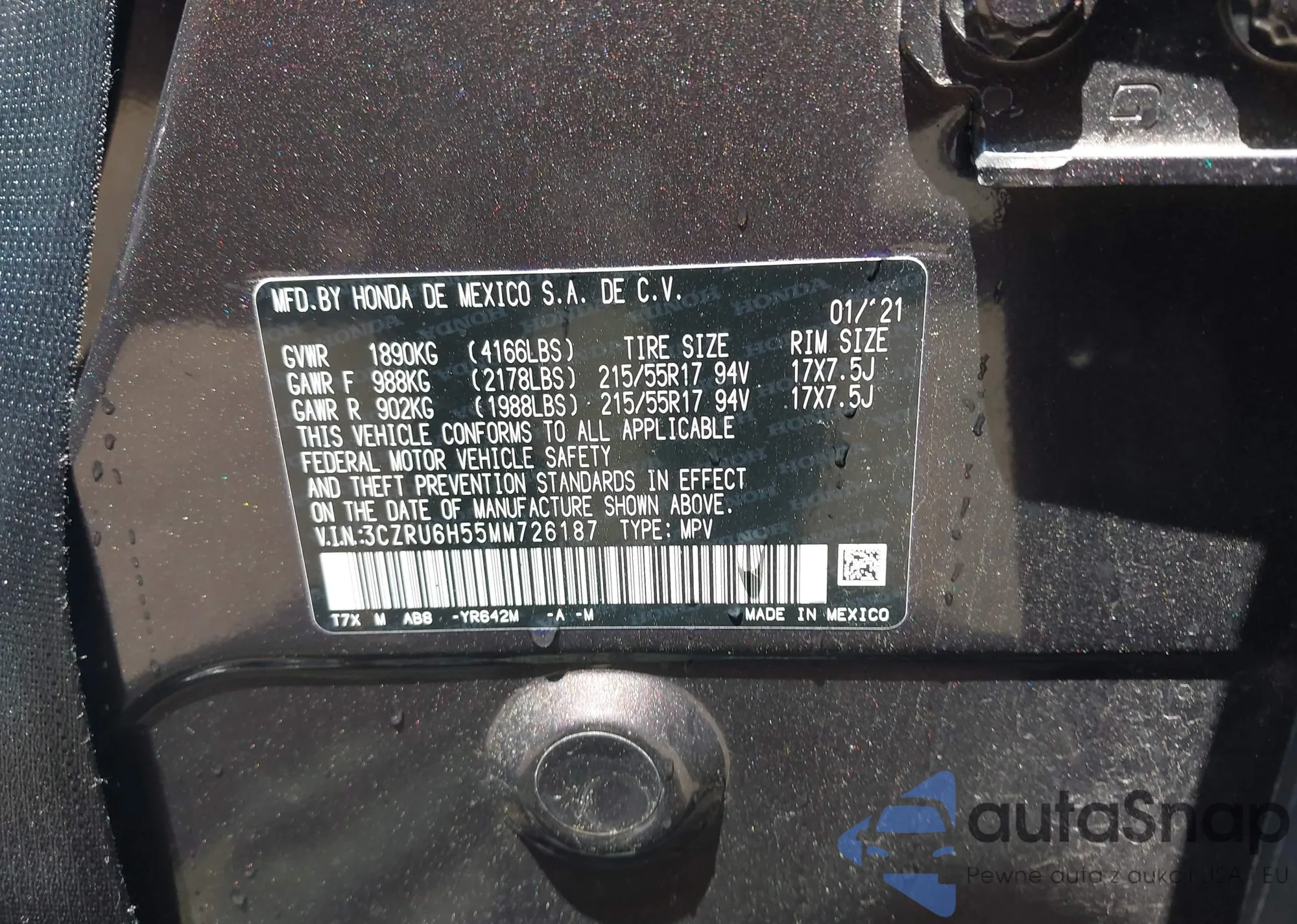 • VIN 3CZRU6H55MM726187