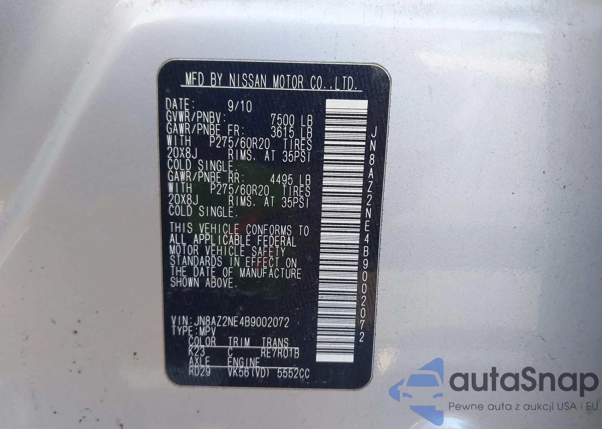 • VIN JN8AZ2NE4B9002072