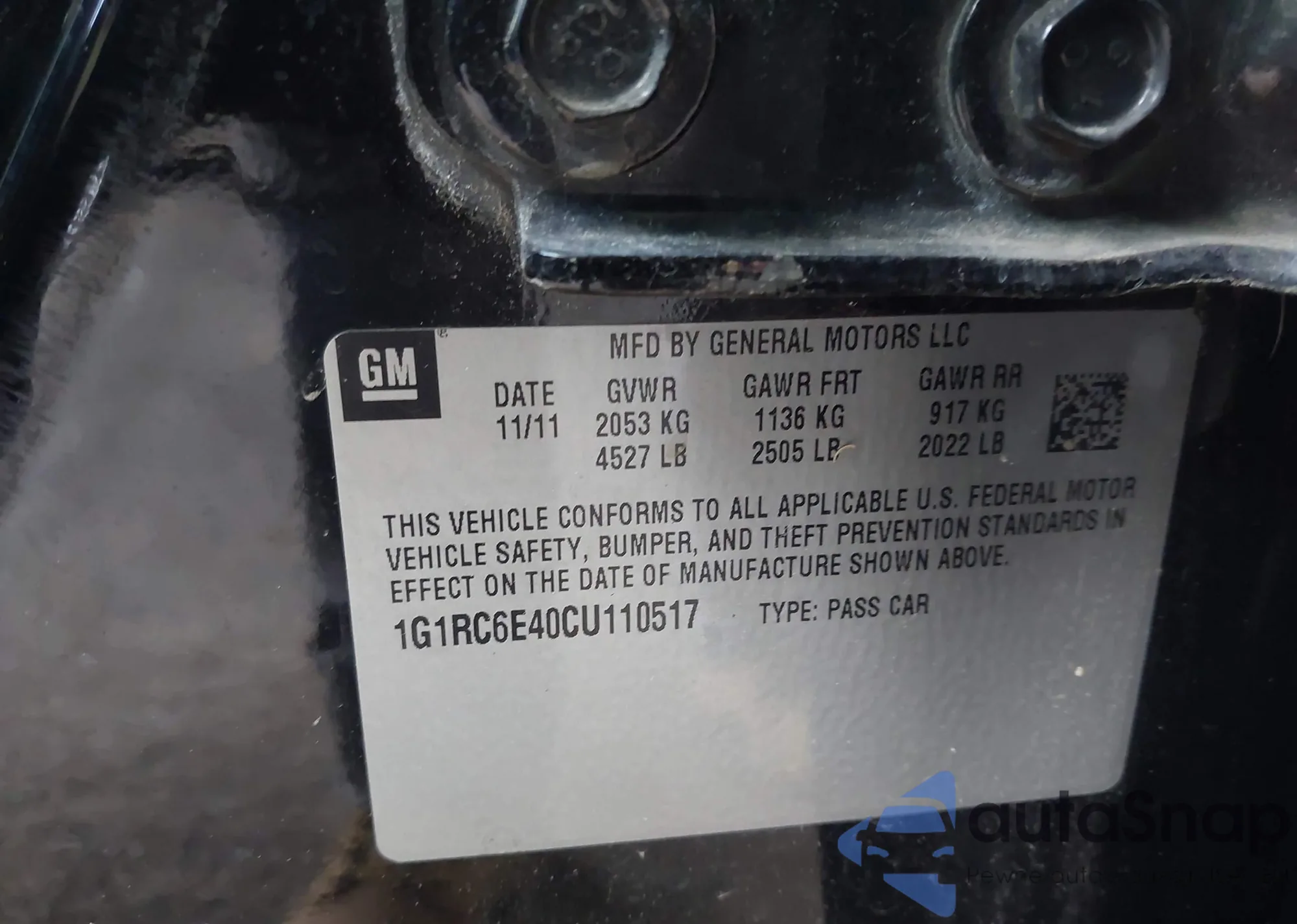• VIN 1G1RC6E40CU110517