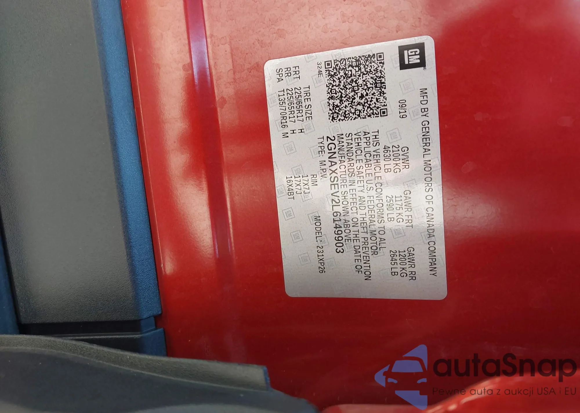 LOT: 42866722 VIN: 2GNAXSEV2L6149903