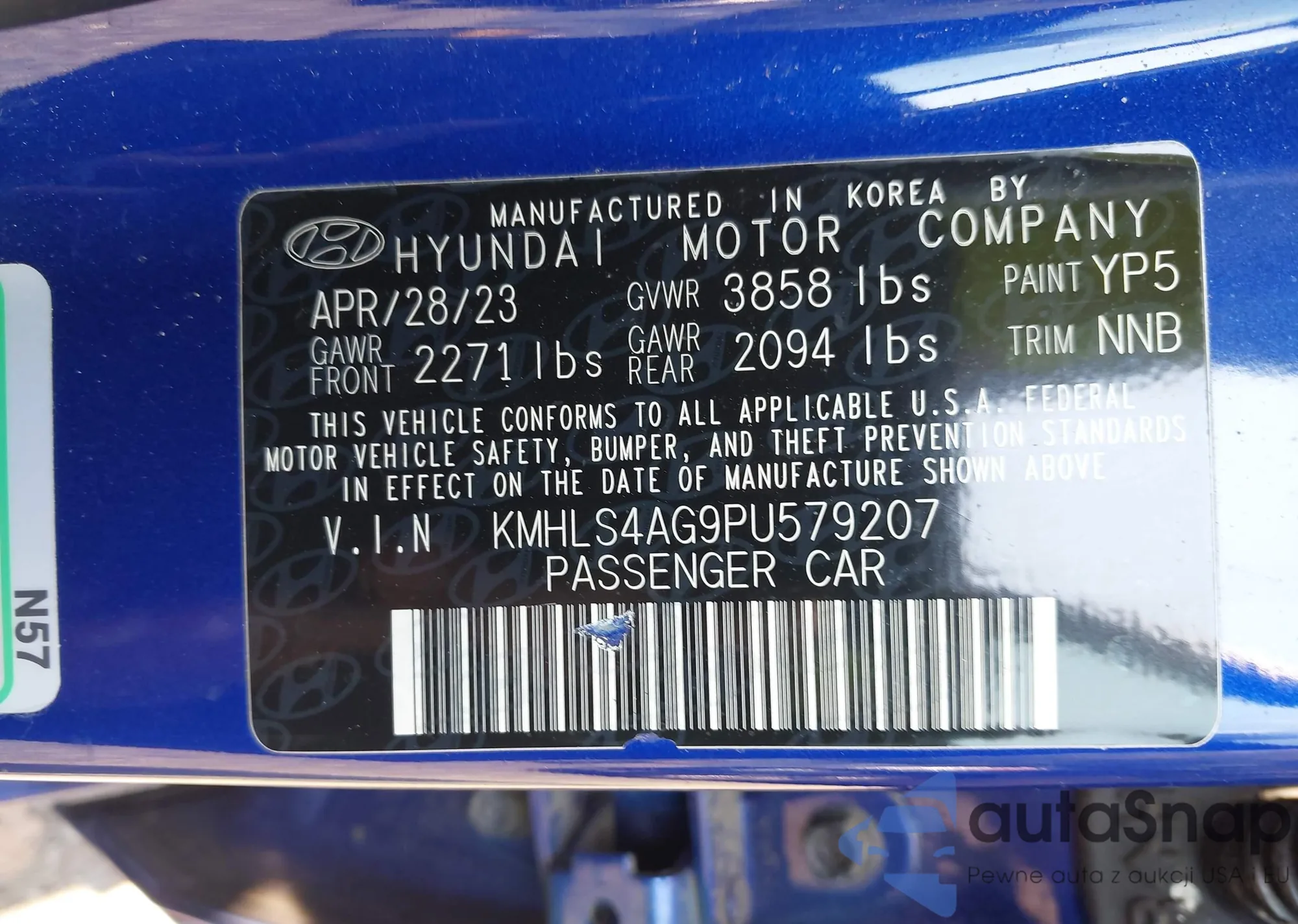 • VIN KMHLS4AG9PU579207
