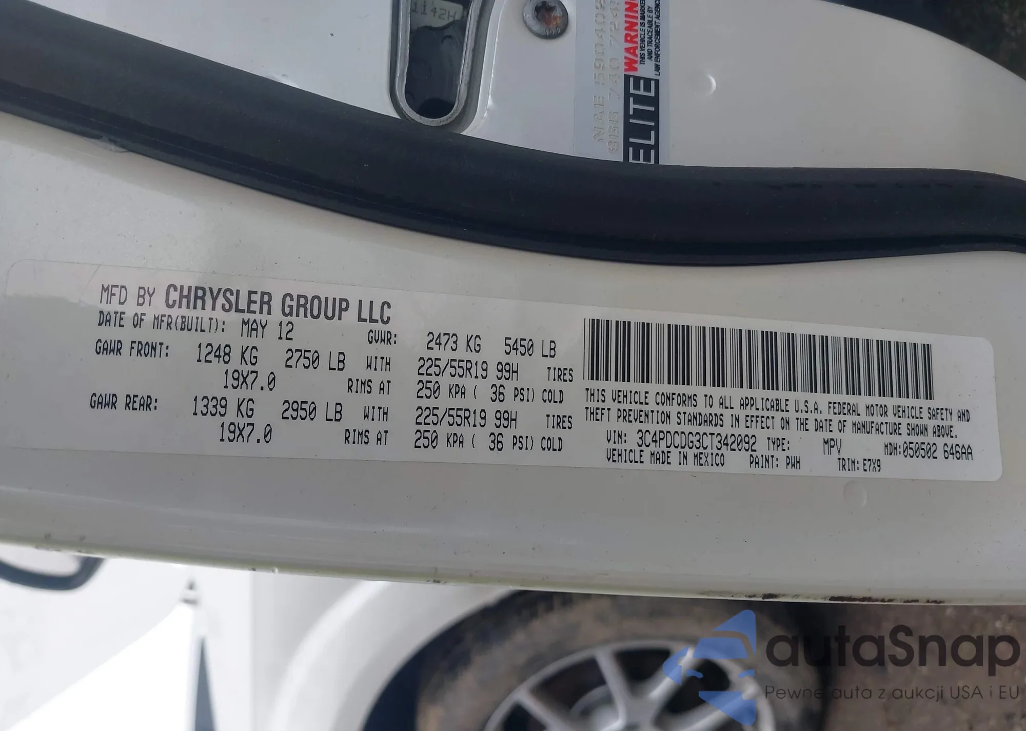 LOT: 42883811 VIN: 3C4PDCDG3CT342092