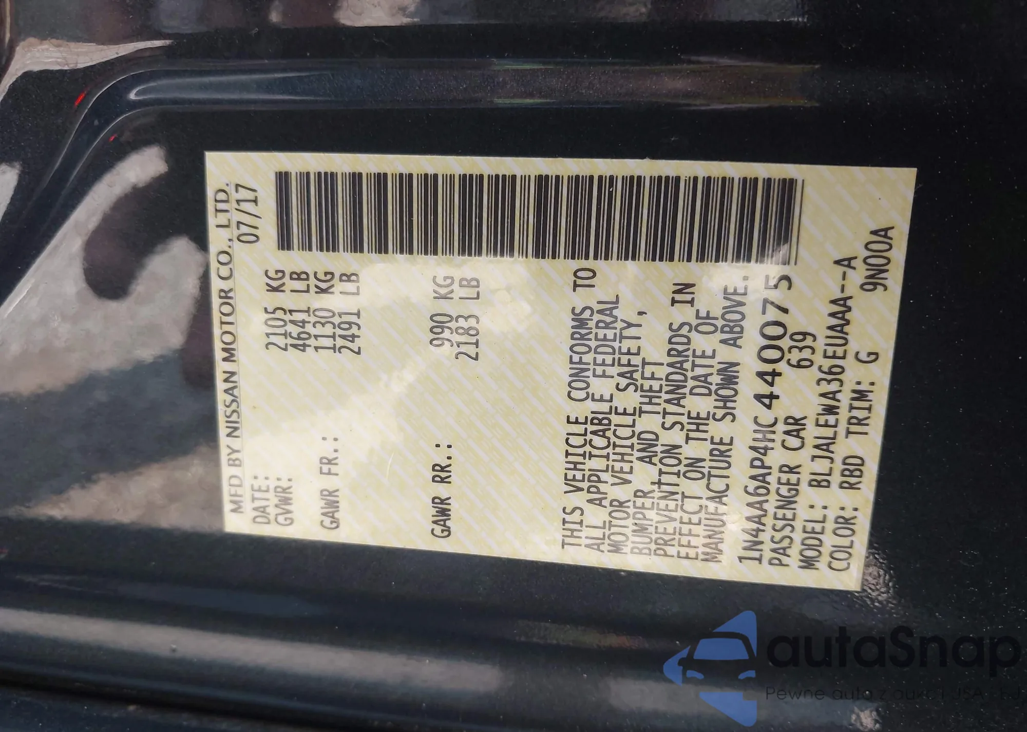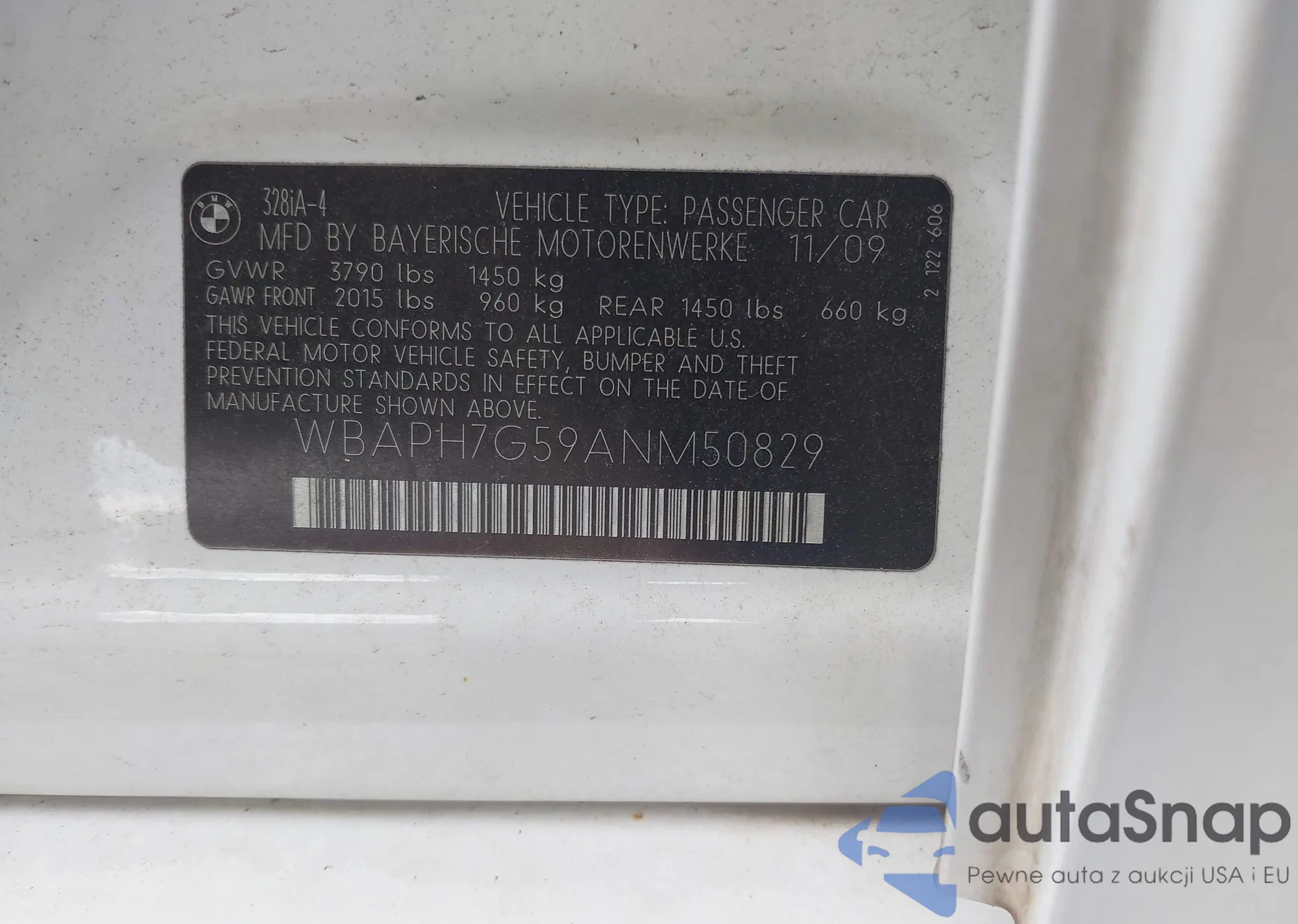 LOT: 39018663 VIN: WBAPH7G59ANM50829