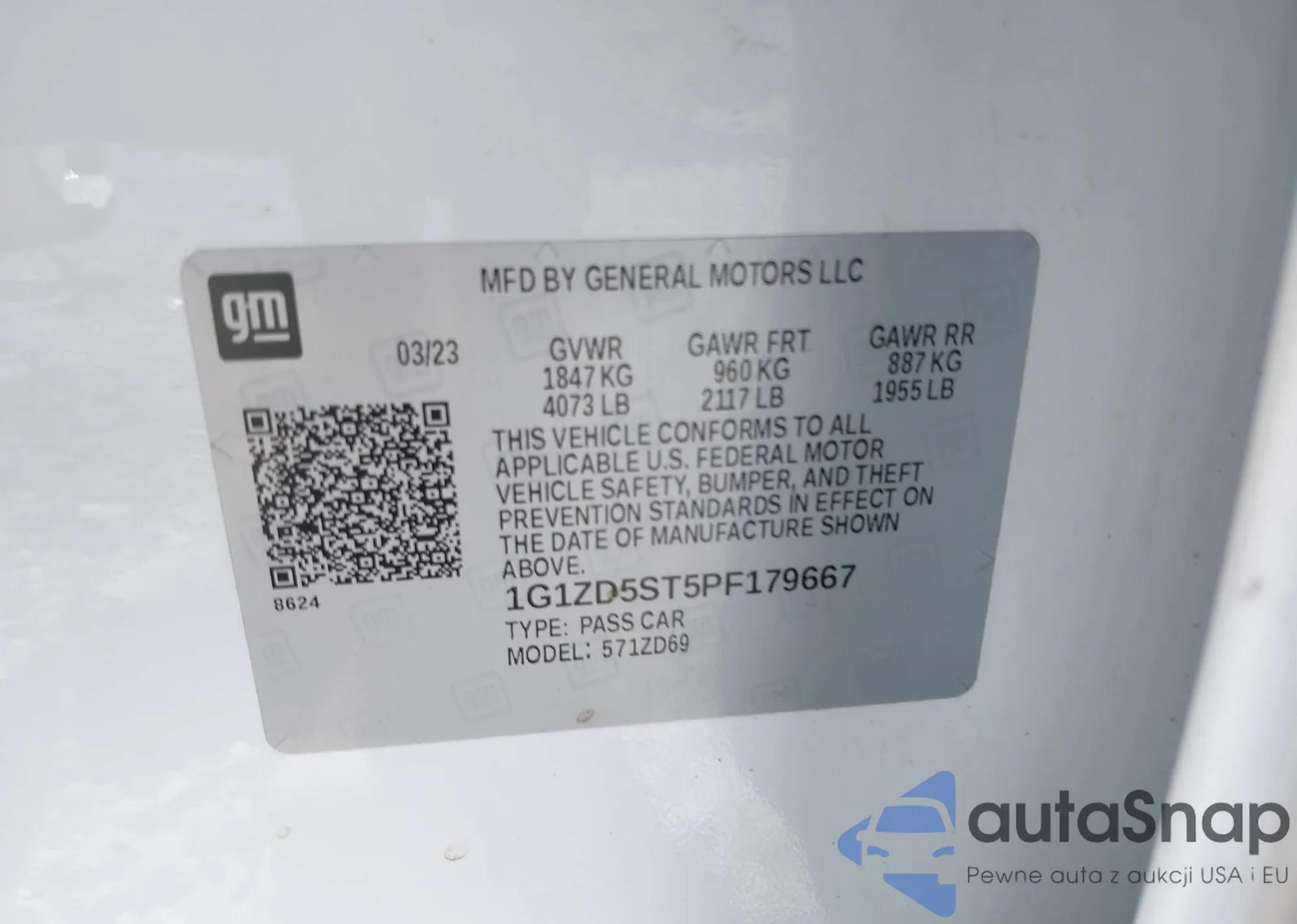 LOT: 43104398 VIN: 1G1ZD5ST5PF179667