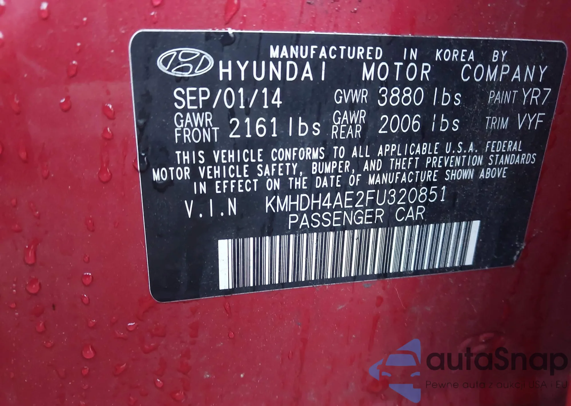 LOT: 43135946 VIN: KMHDH4AE2FU320851