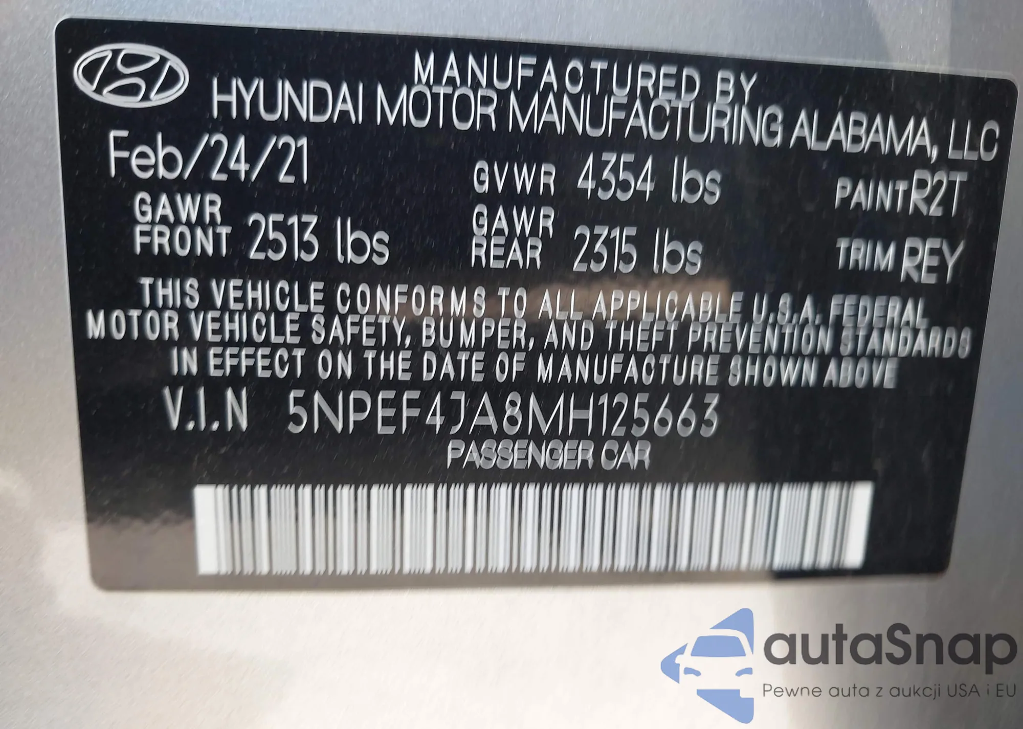 • VIN 5NPEF4JA8MH125663
