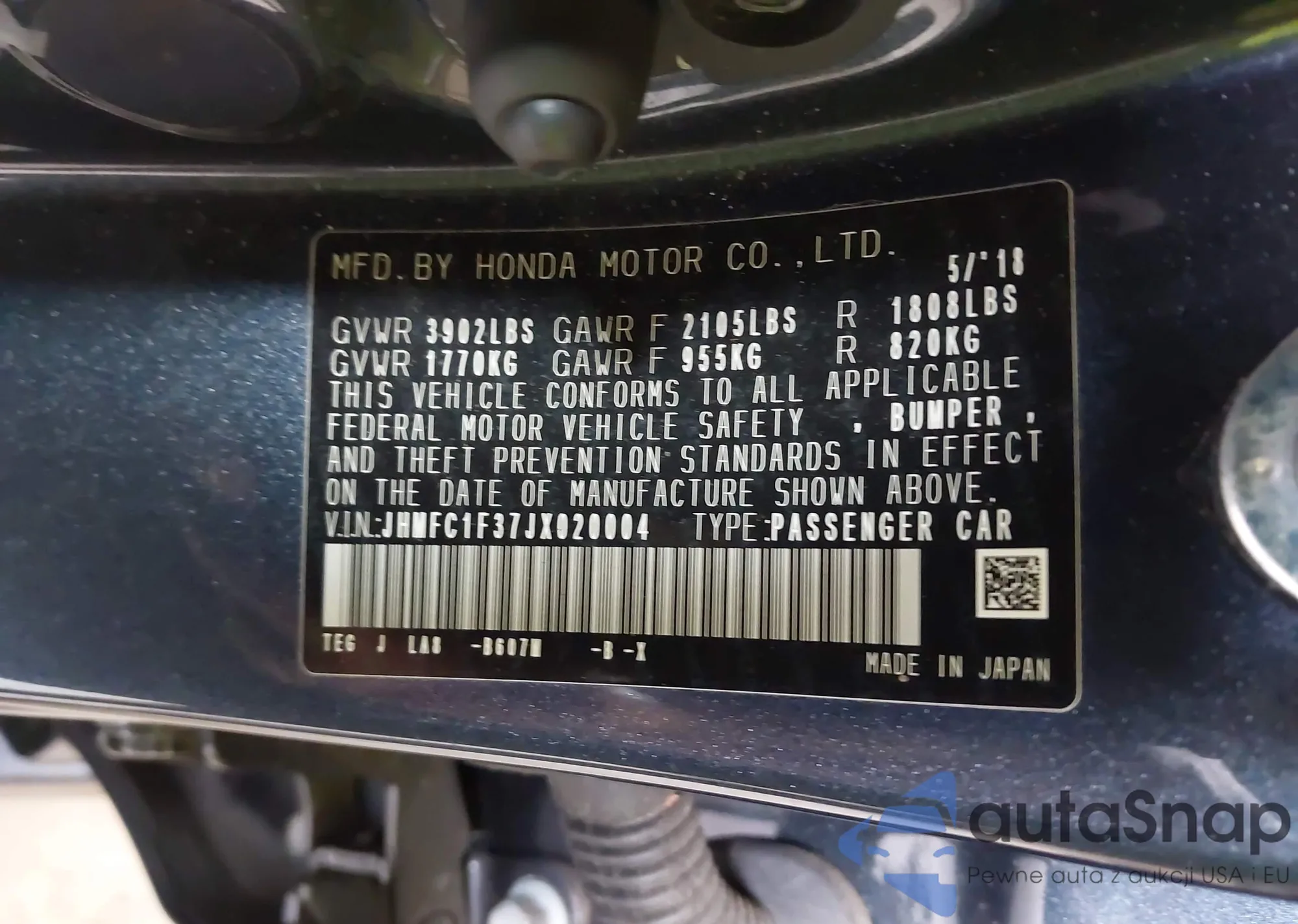 LOT: 43113150 VIN: 1HGCM56357A038930