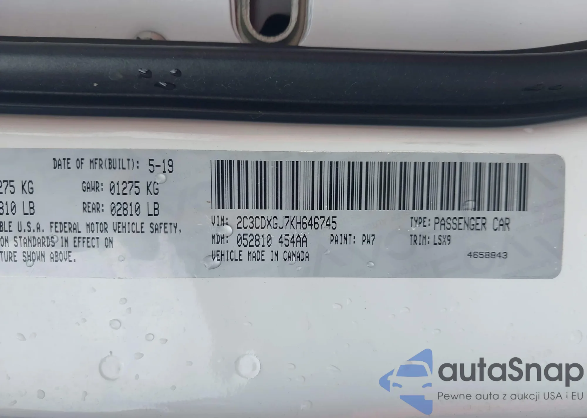 • VIN 2C3CDXGJ7KH646745