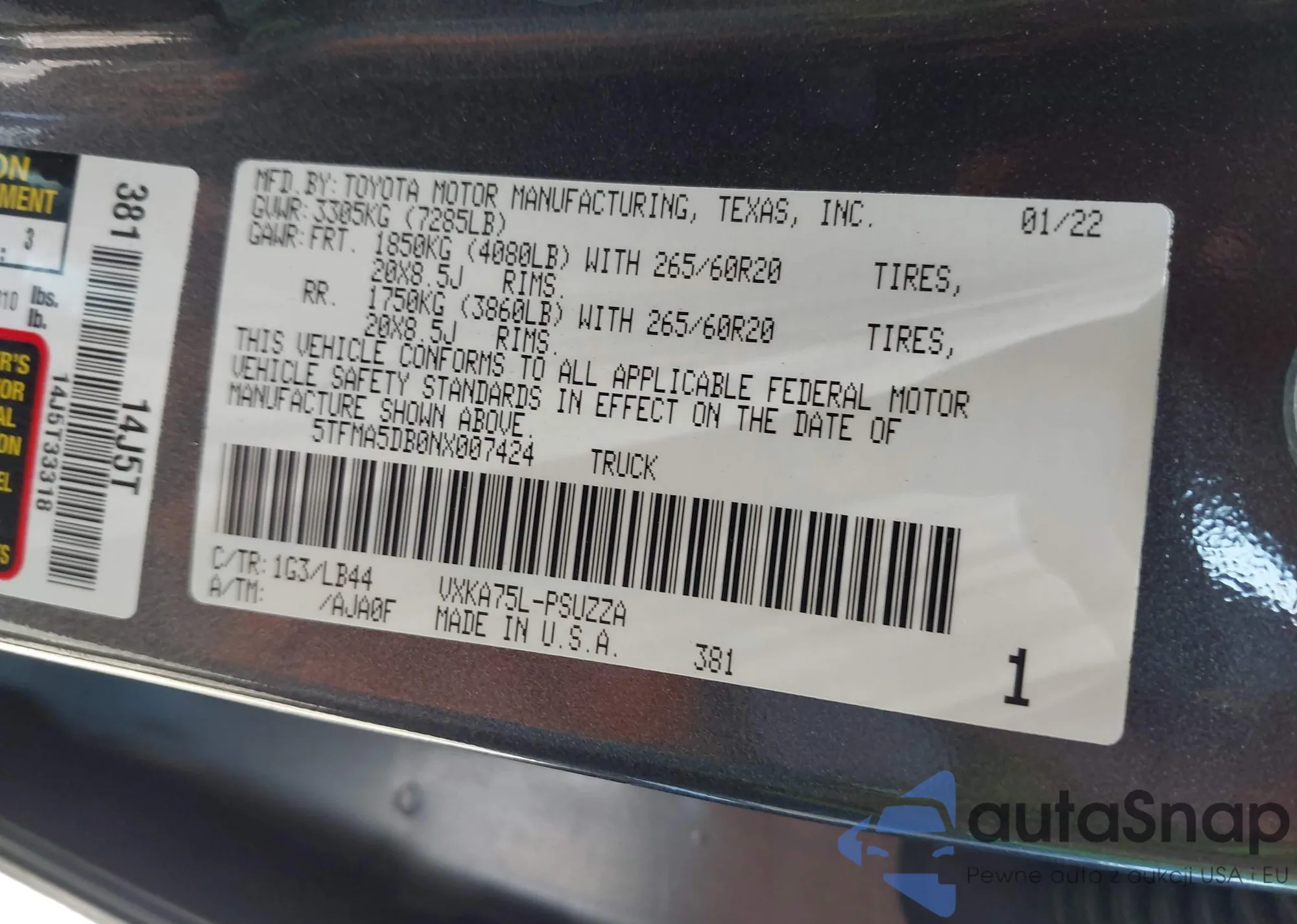 • VIN 5TFMA5DB0NX007424