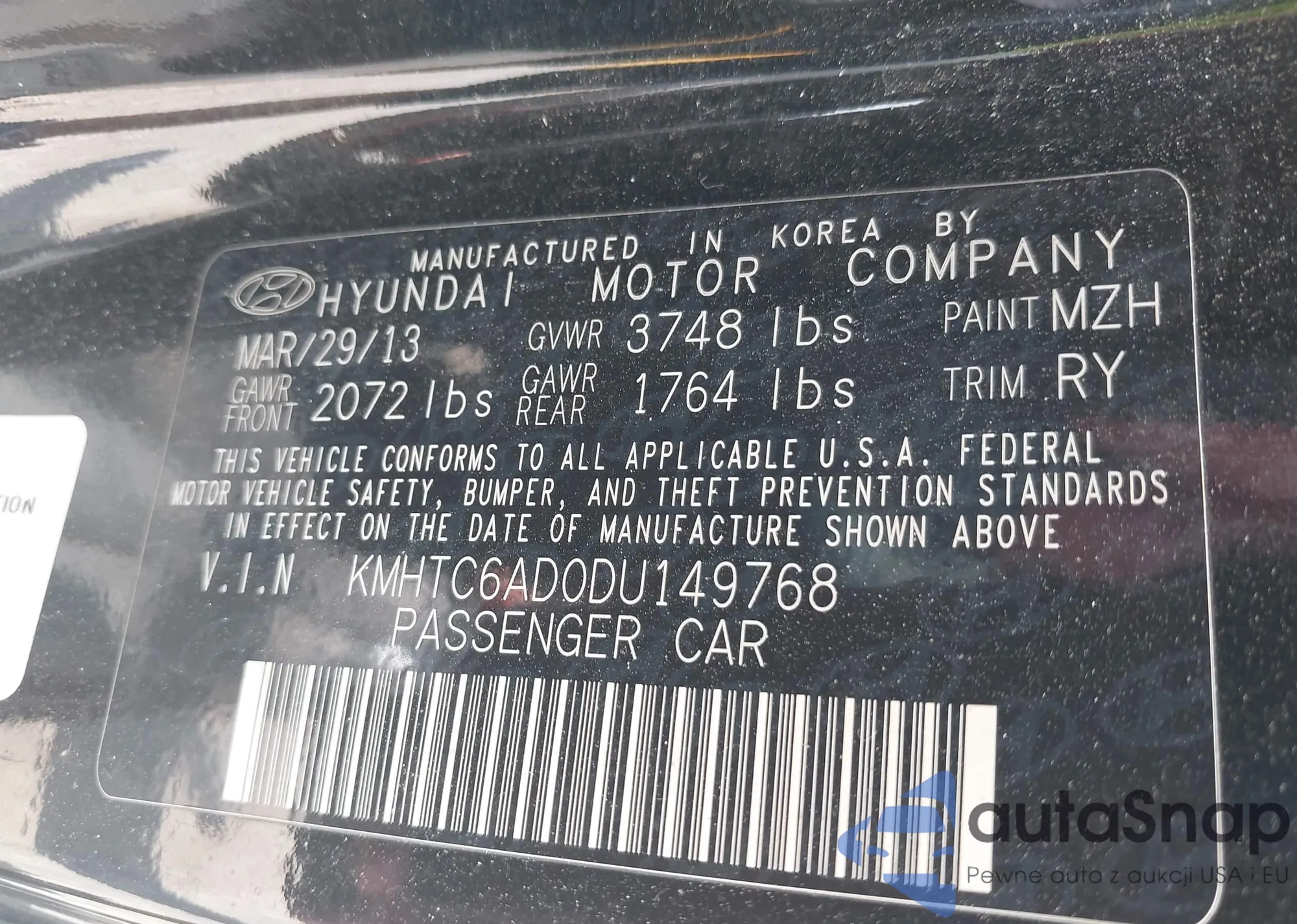 • VIN KMHTC6AD0DU149768