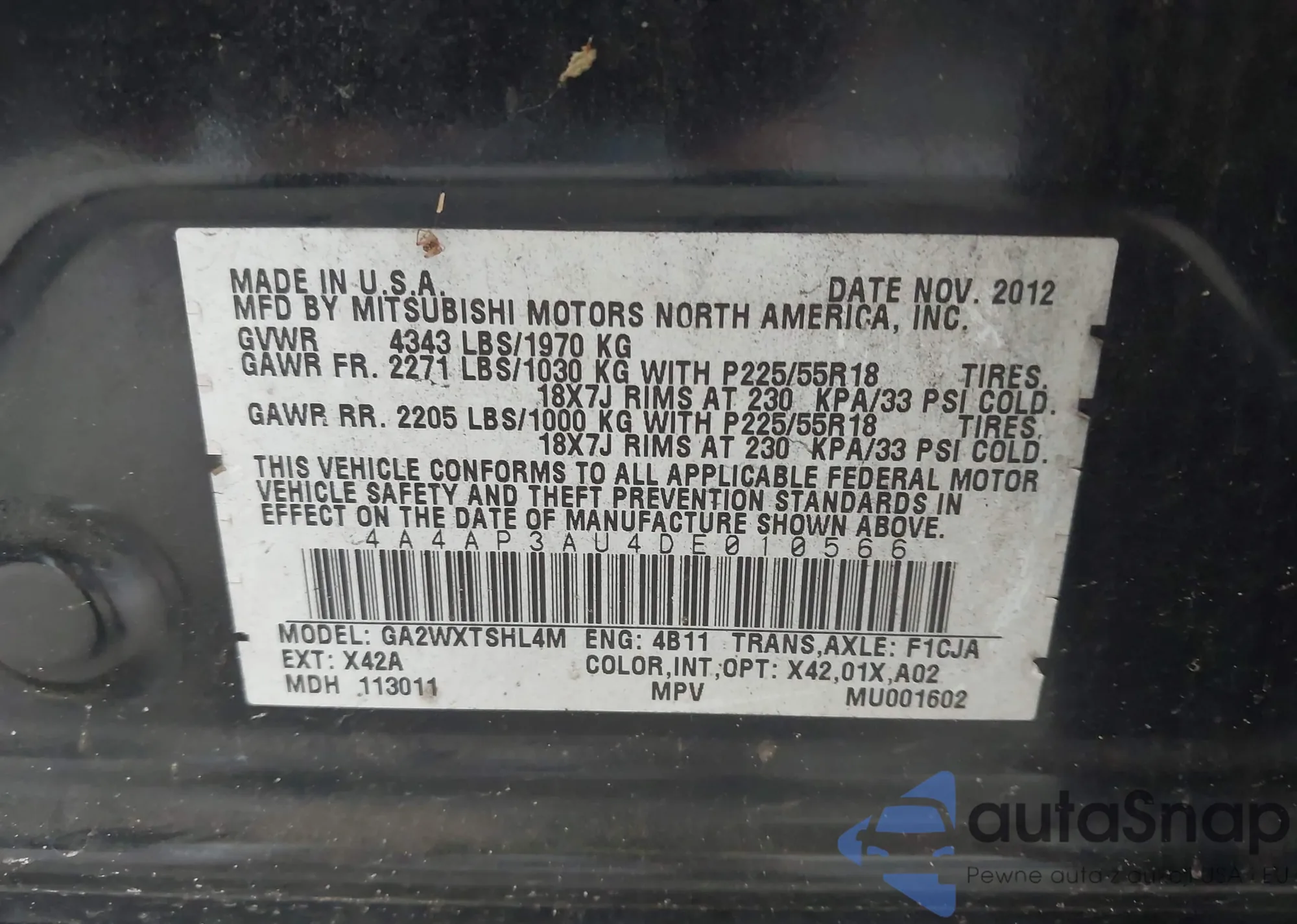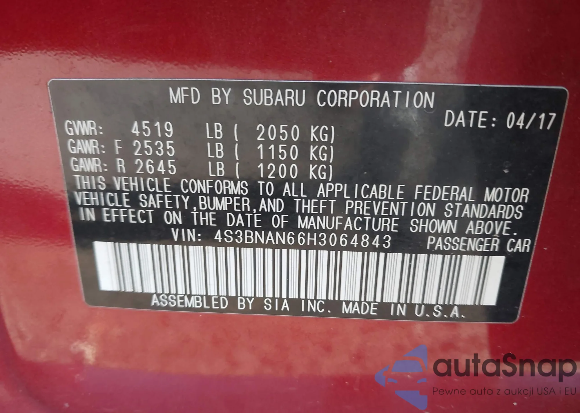 LOT: 43030489 VIN: 4S3BNAN66H3064843