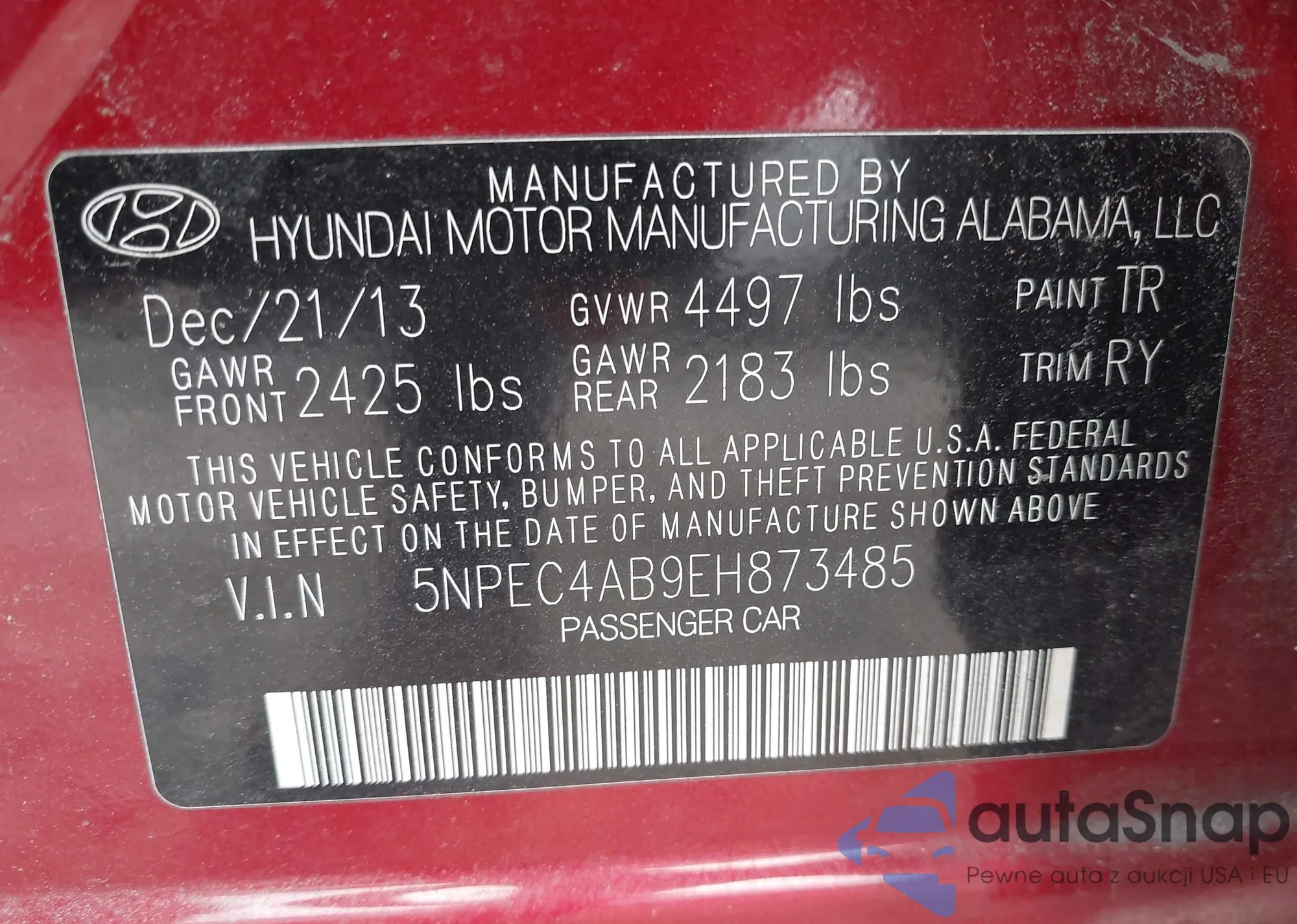 • VIN 5NPEC4AB9EH873485