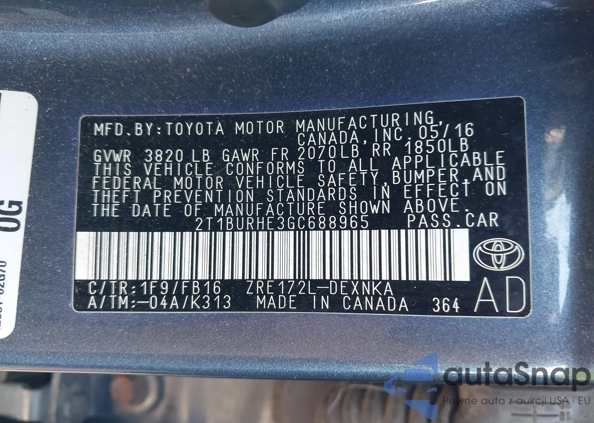 • VIN 4T3ZF13C93U514558