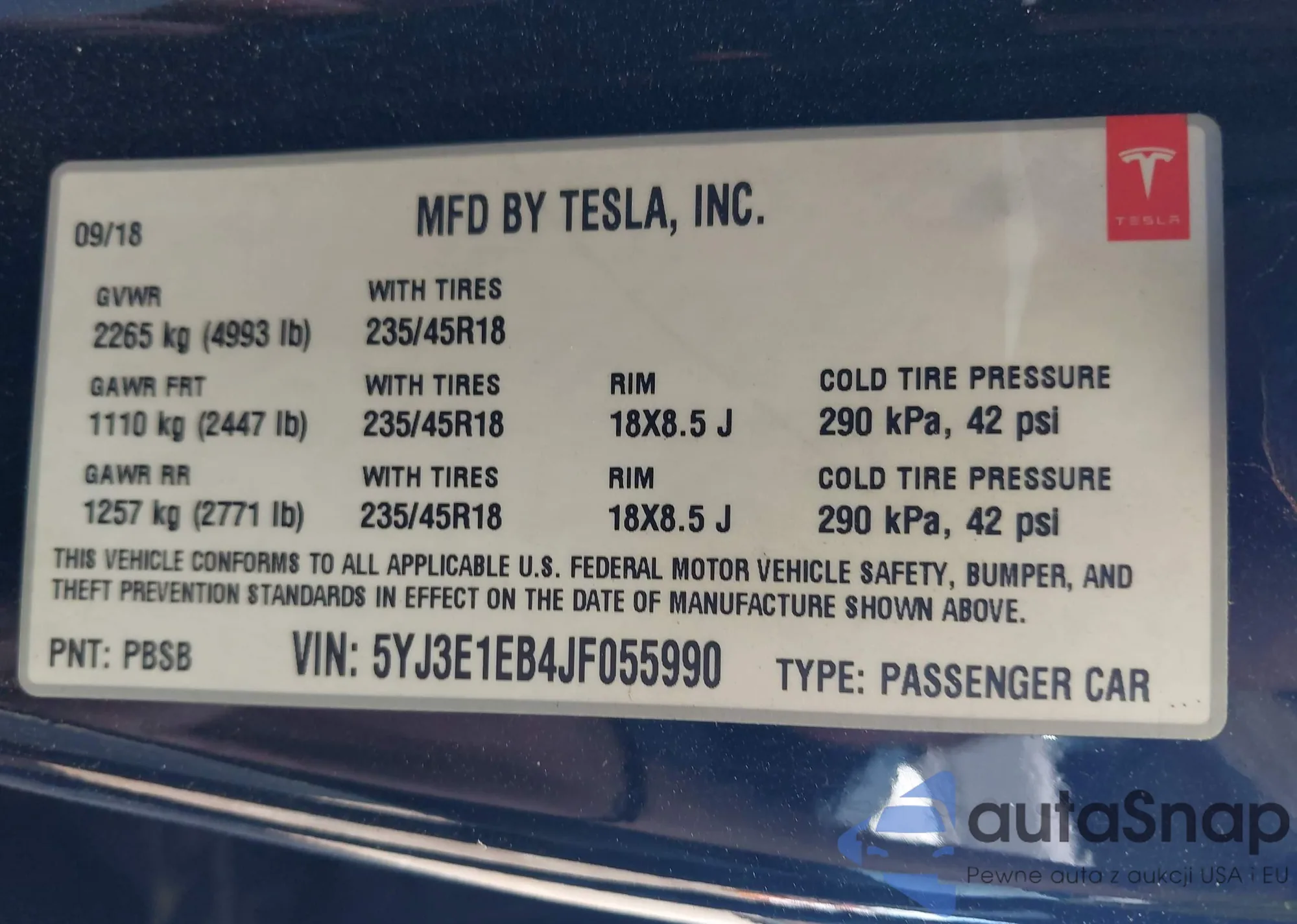 • VIN 5YJ3E1EB4JF055990