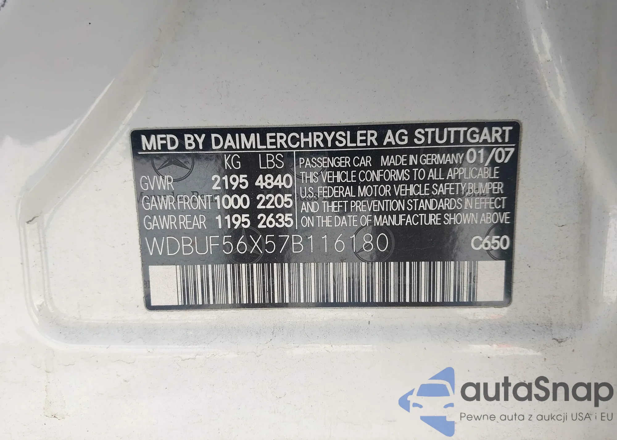 LOT: 43030983 VIN: WDBUF56X57B116180
