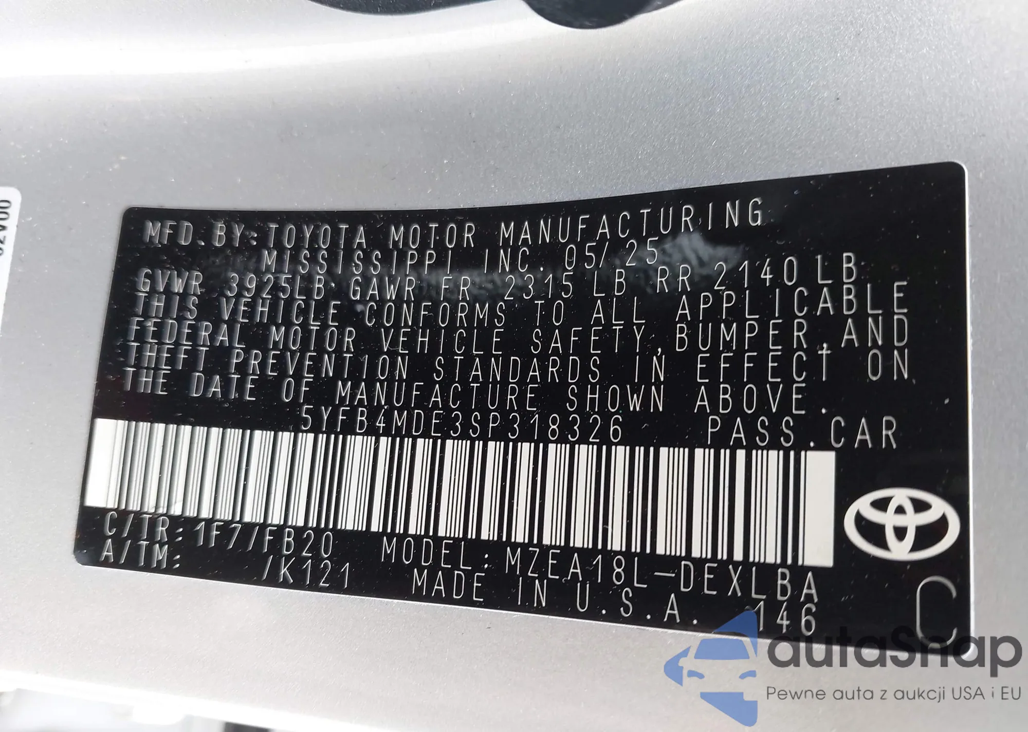 • VIN 5YFB4MDE3SP318326