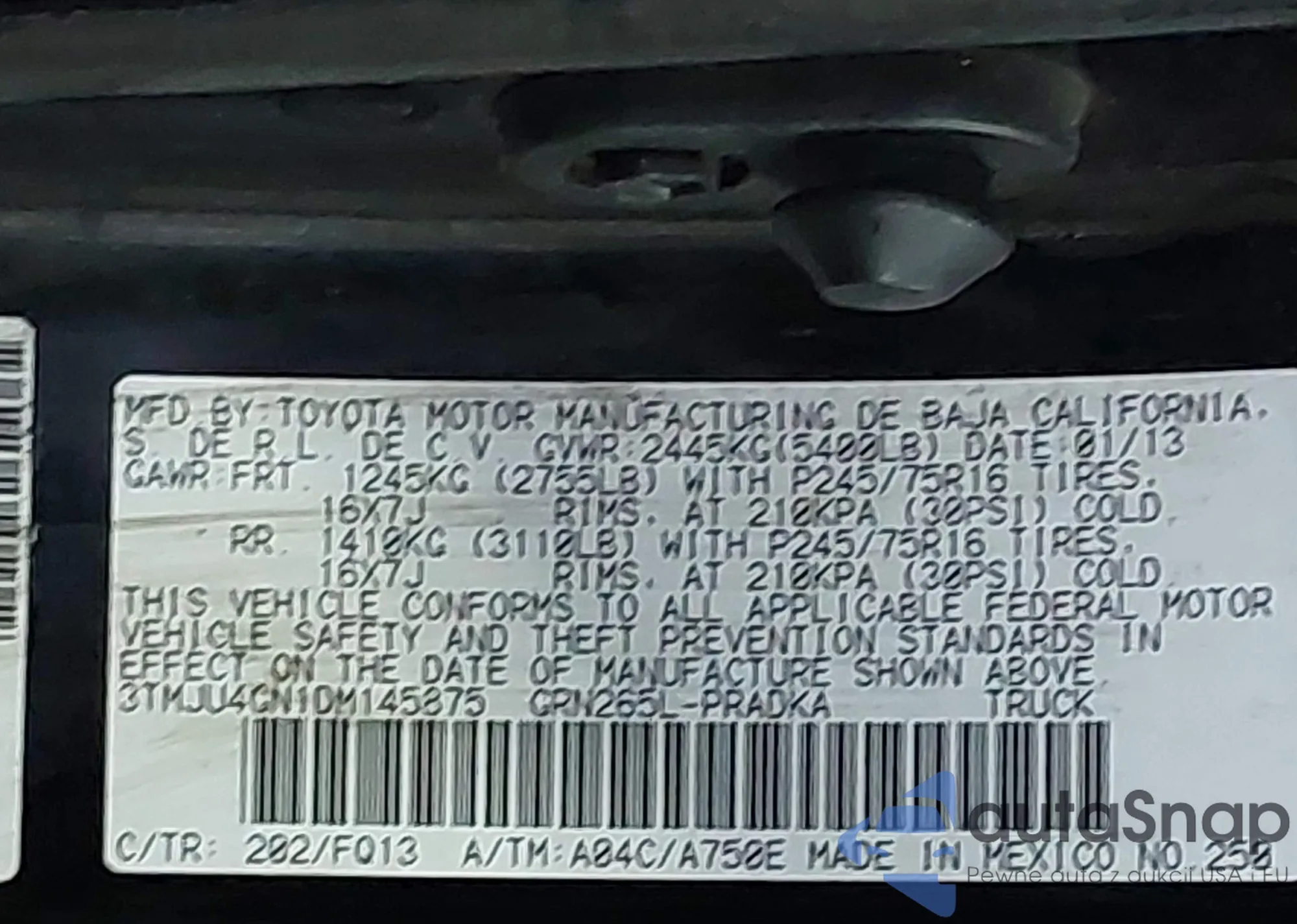• VIN 3TMJU4GN1DM145875