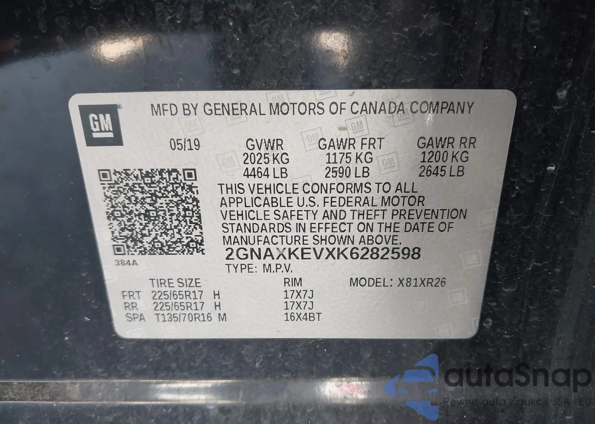 • VIN 2GNAXKEVXK6282598