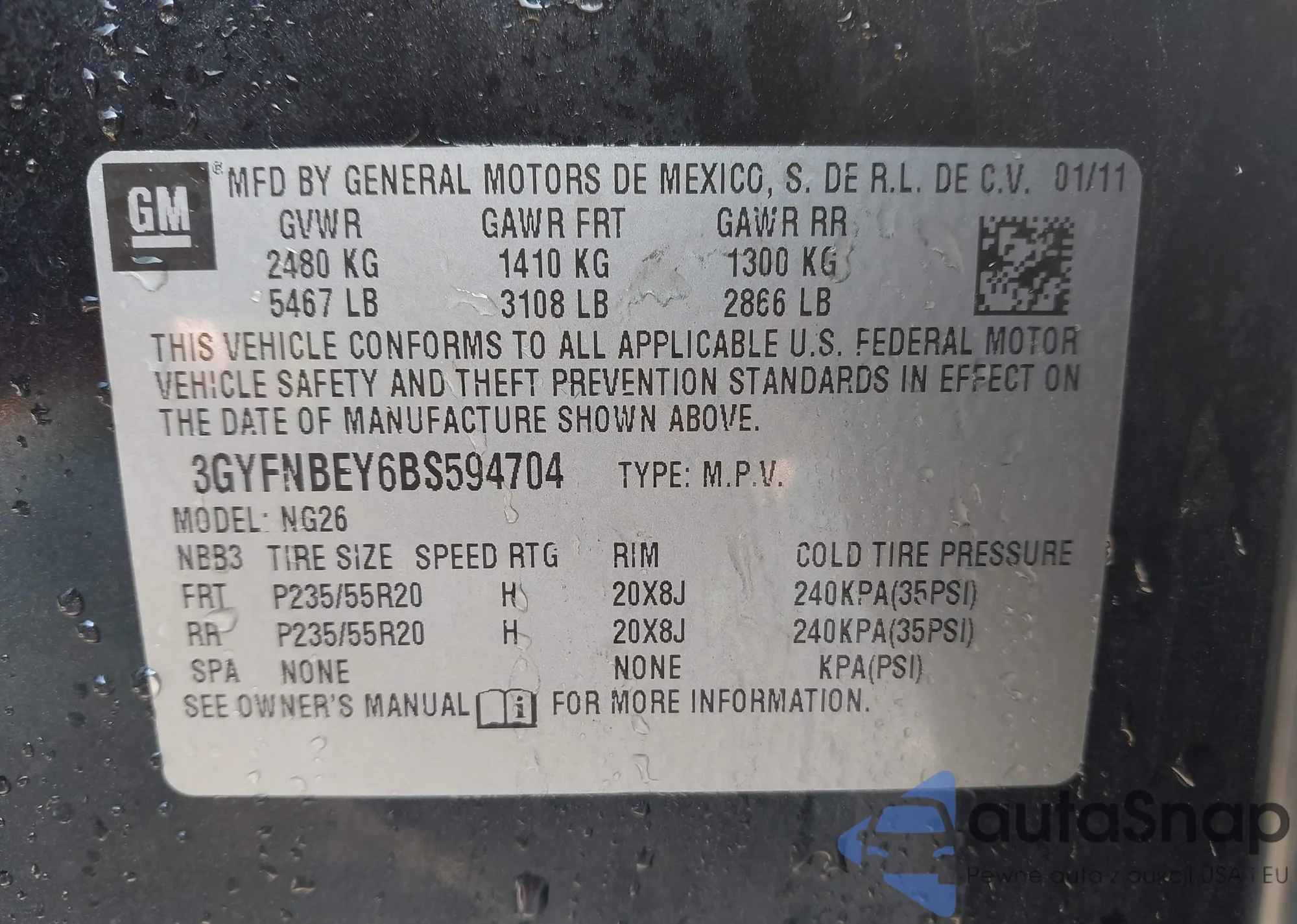 • VIN 3GYFNBEY6BS594704