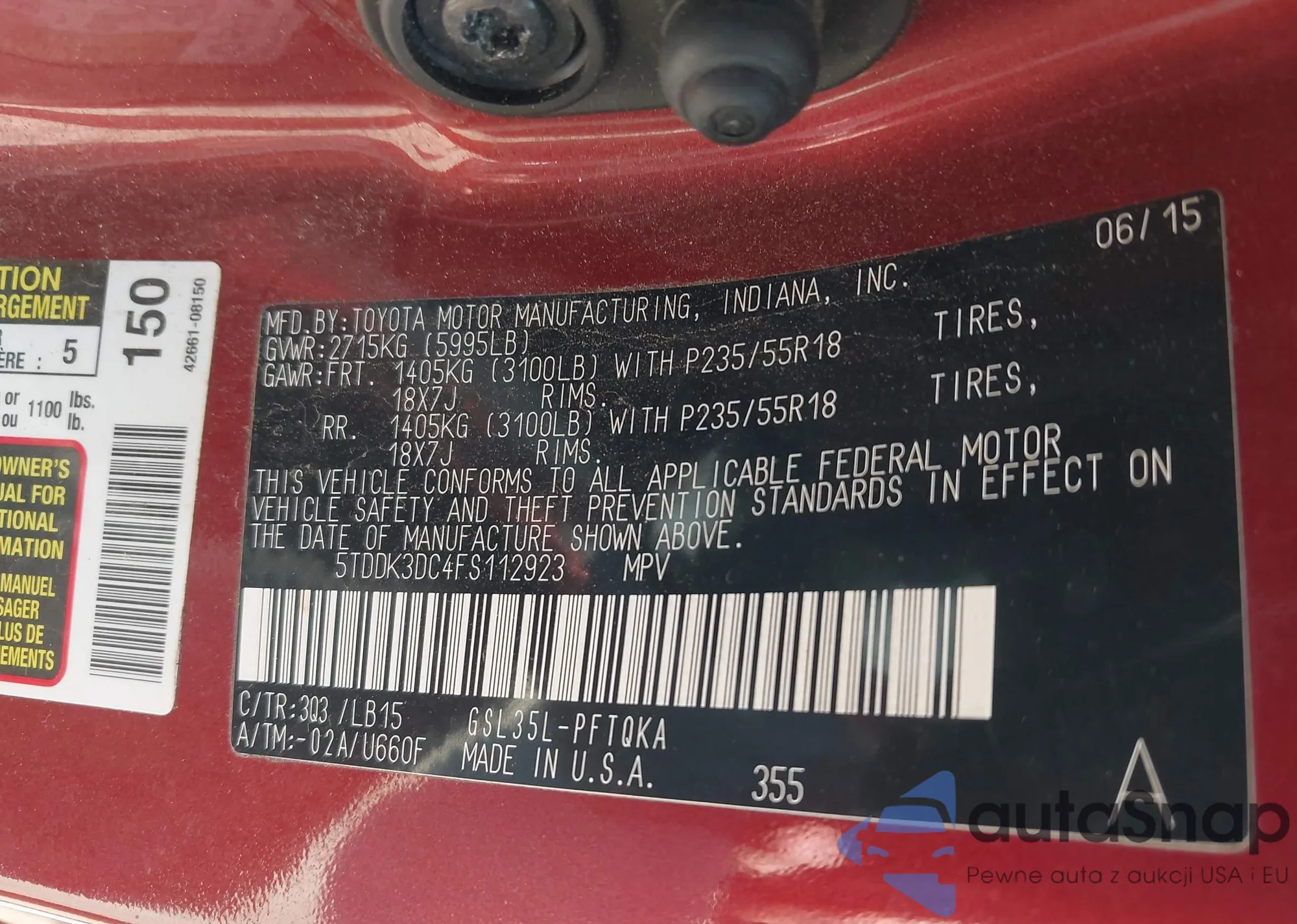 LOT: 43026777 VIN: 5TDDK3DC4FS112923